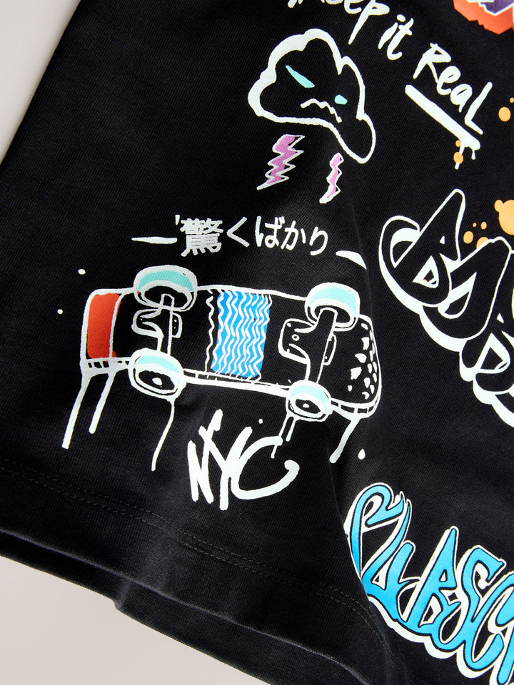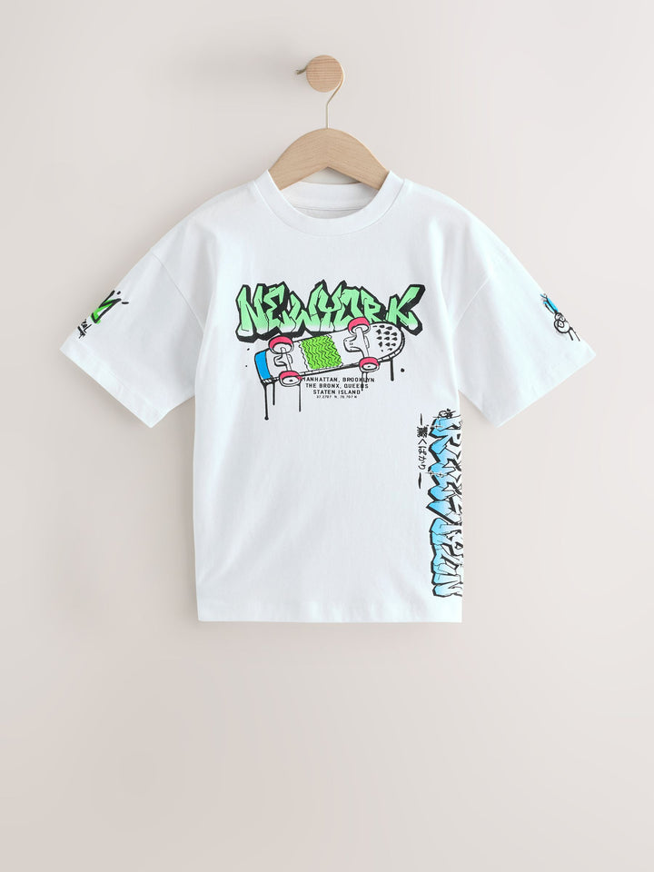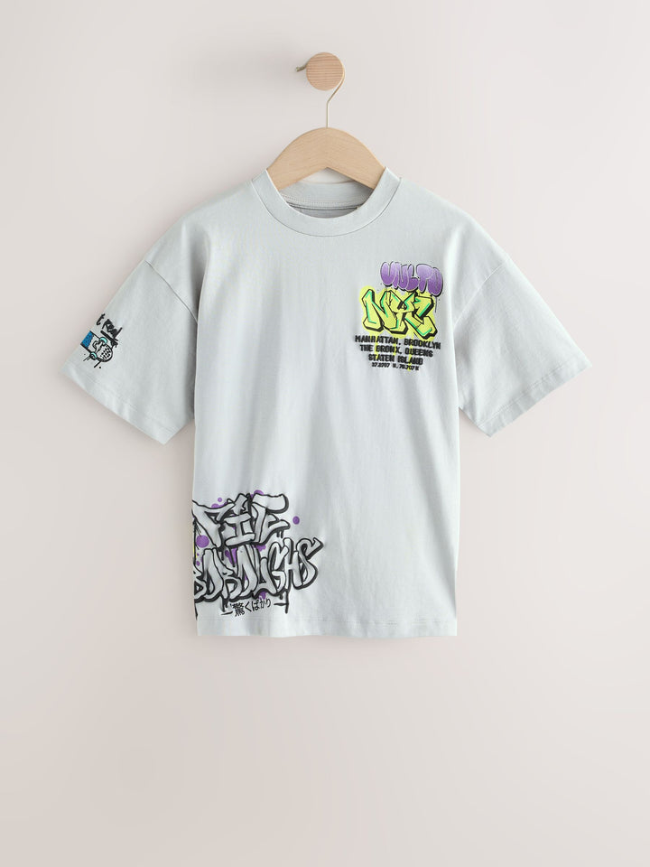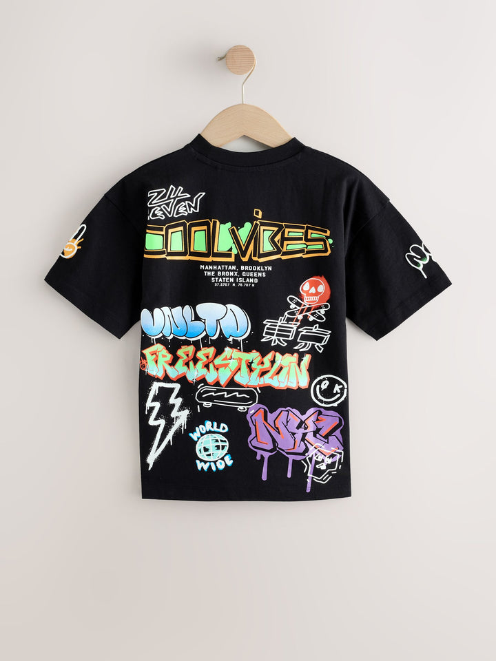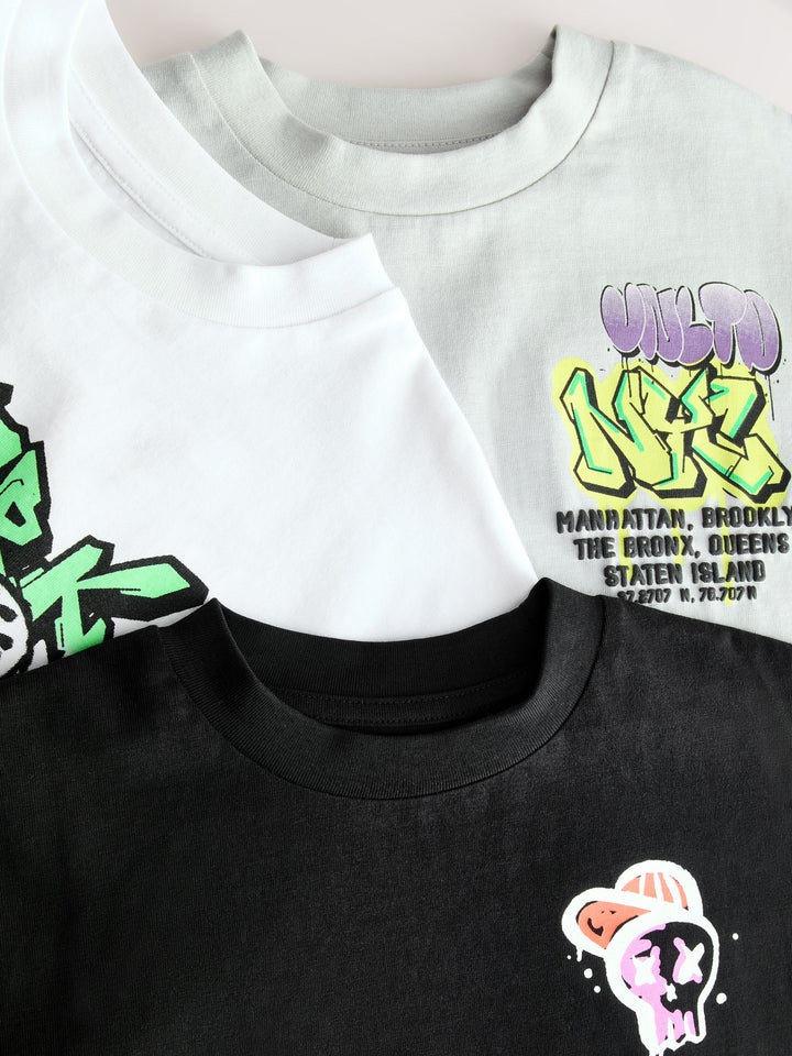 Black/White/Grey Relaxed Fit Graphic Print Short Sleeve T-Shirts 3 Pack (3-16yrs)
