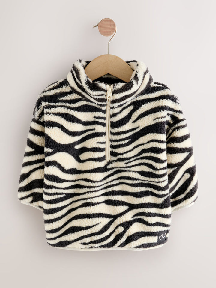 Black/White Zebra Print Quarter Zip Fleece (3mths-7yrs)