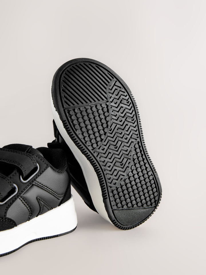 These classic black trainers are perfect for everyday wear, featuring a synthetic leather upper with adjustable dual-strap touch fastenings, a perforated toe box and a textile lining, finished with a durable outsole. Wide fit (G) Synthetic upper Touch-fastened straps Textile lining Durable outsole Upper - Other Materials, Textile, Lining & Sock - Textile, Sole - Other Materials. Country of Origin: China