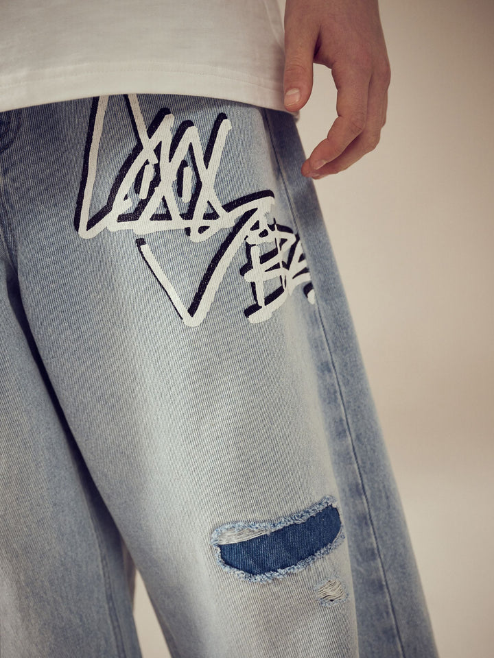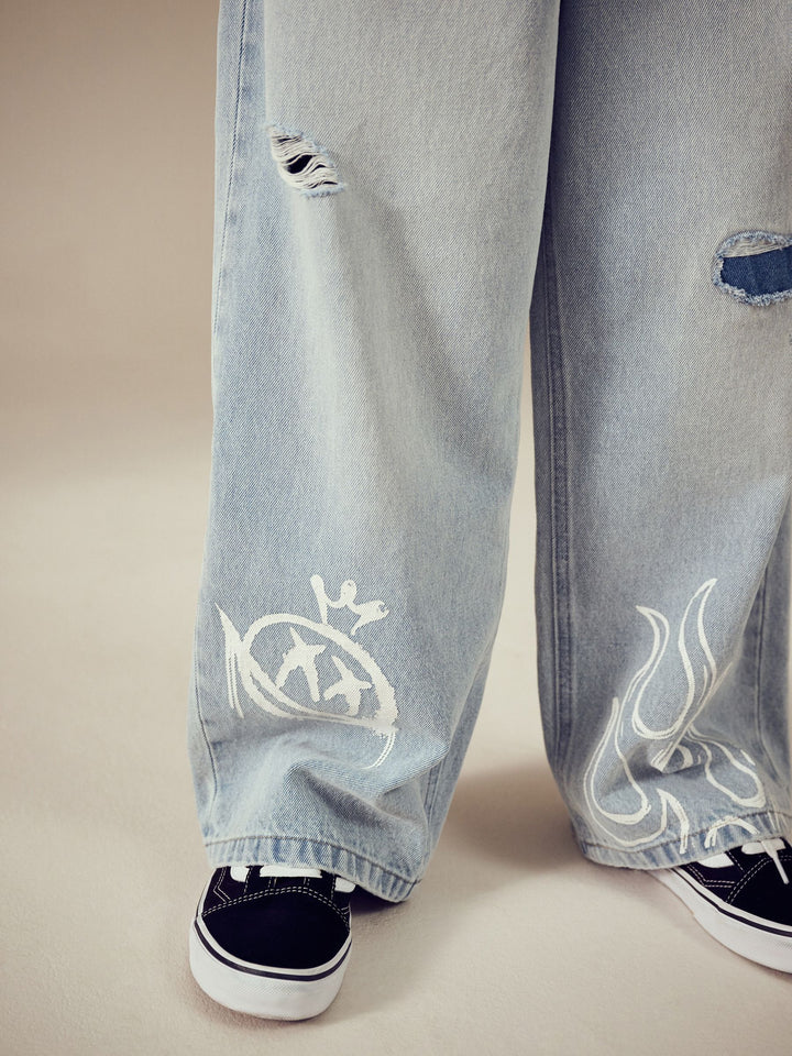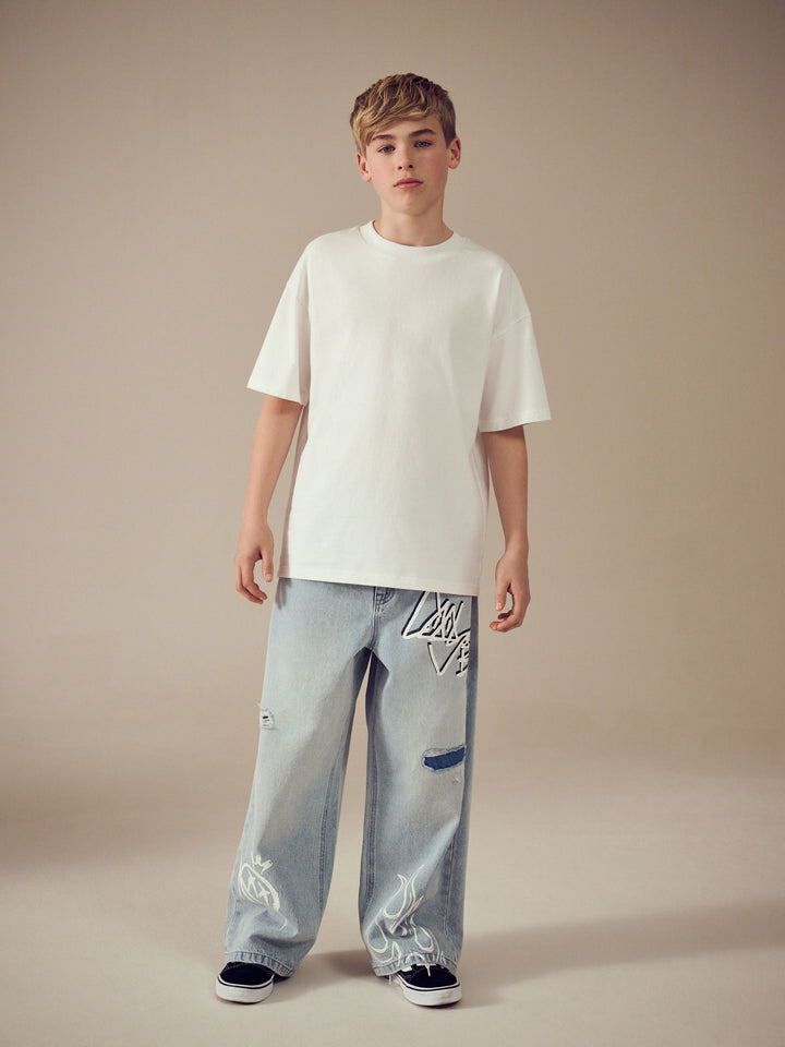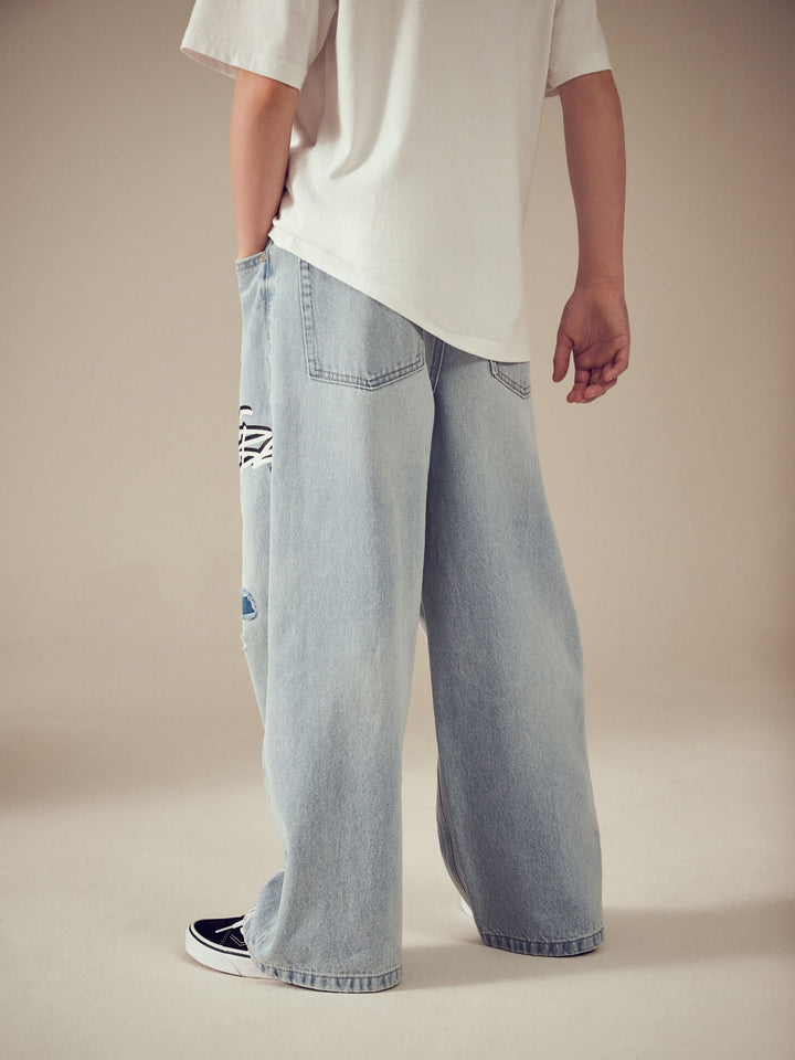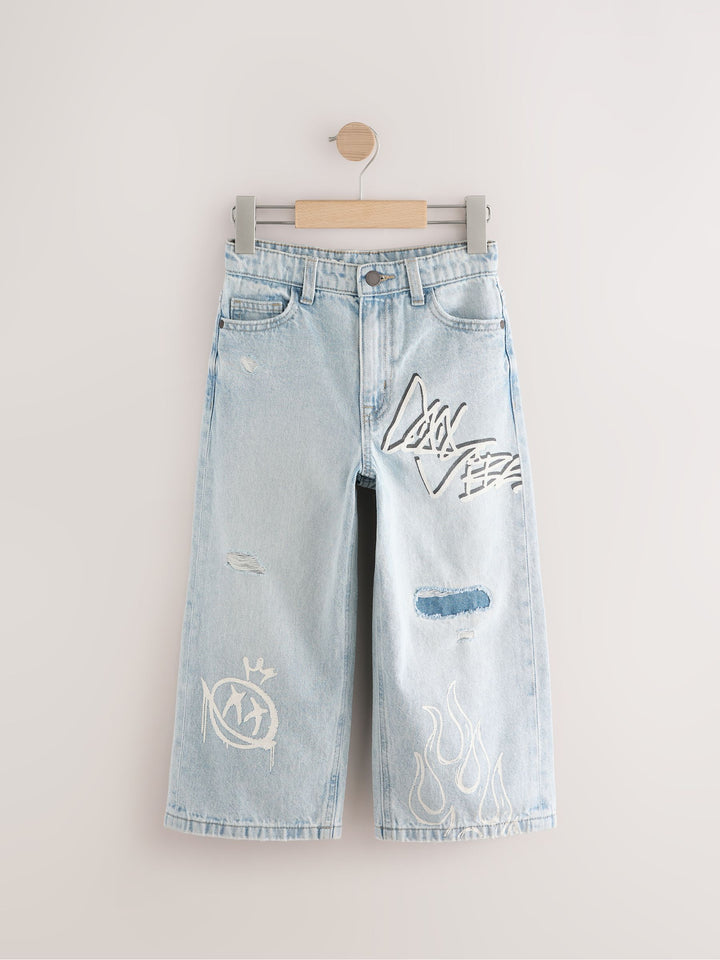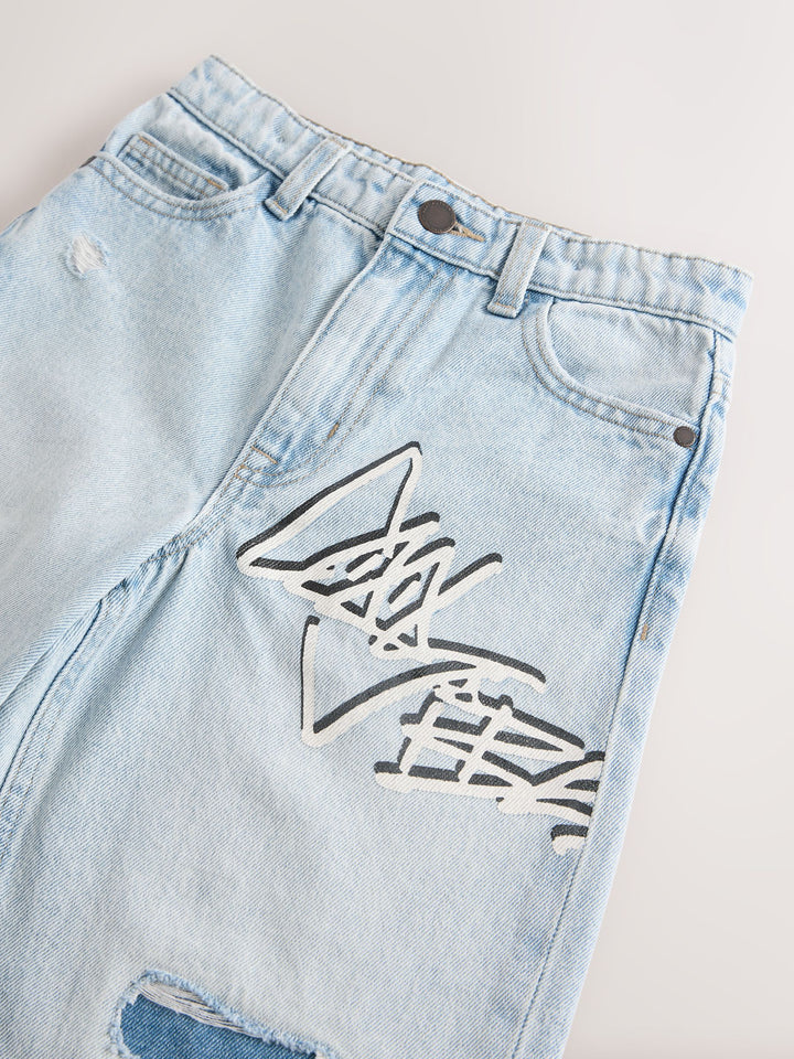 Bleach Distressed Super-wide Fit 100% Cotton Graffiti Denim Jeans (3-16yrs)