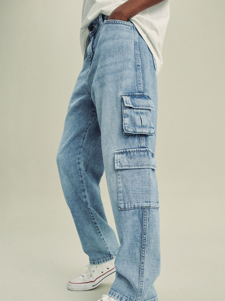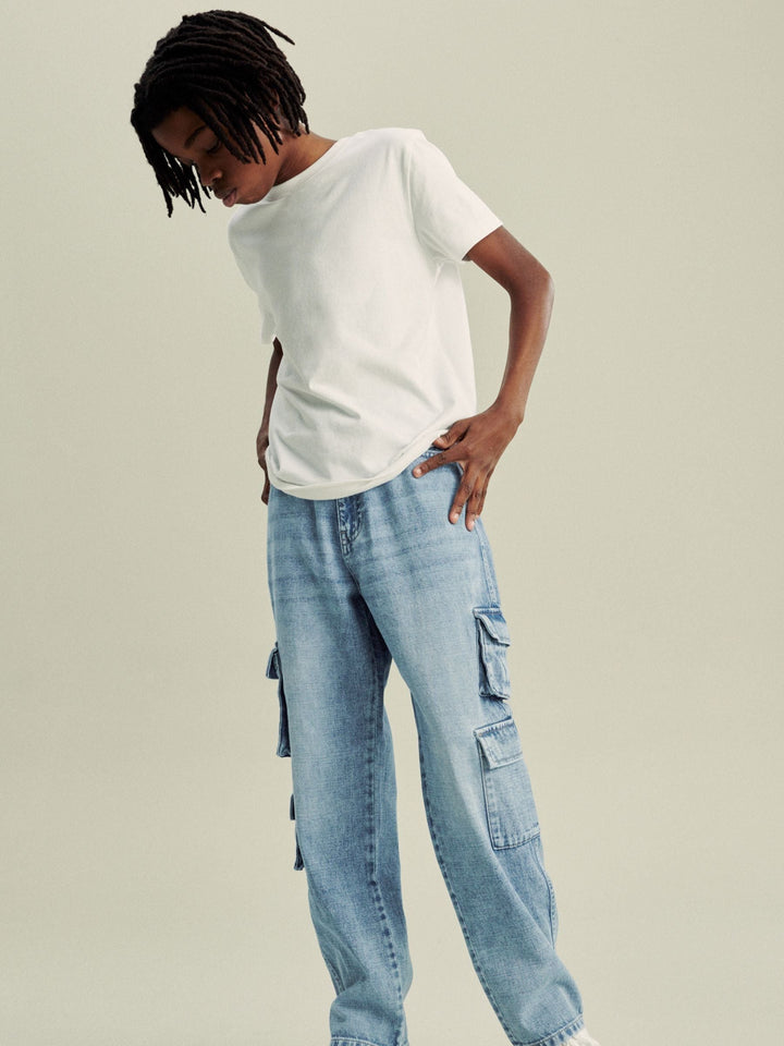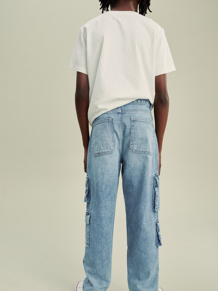 Bleach Wash 100% Cotton Denim Multipocket Cargo Jeans (3-16yrs)