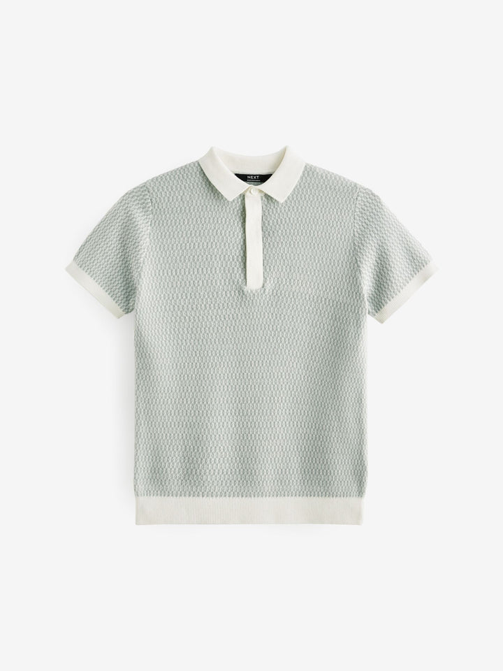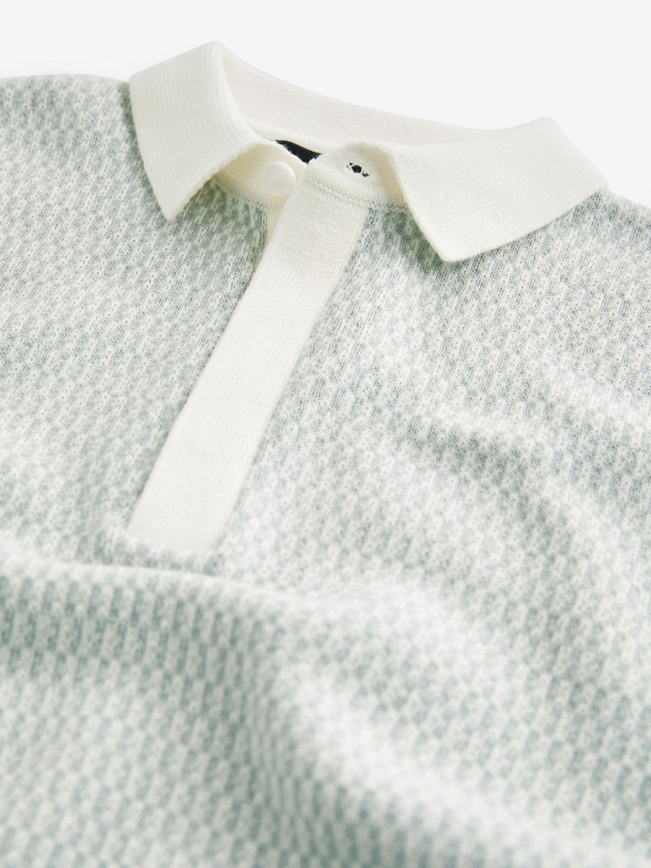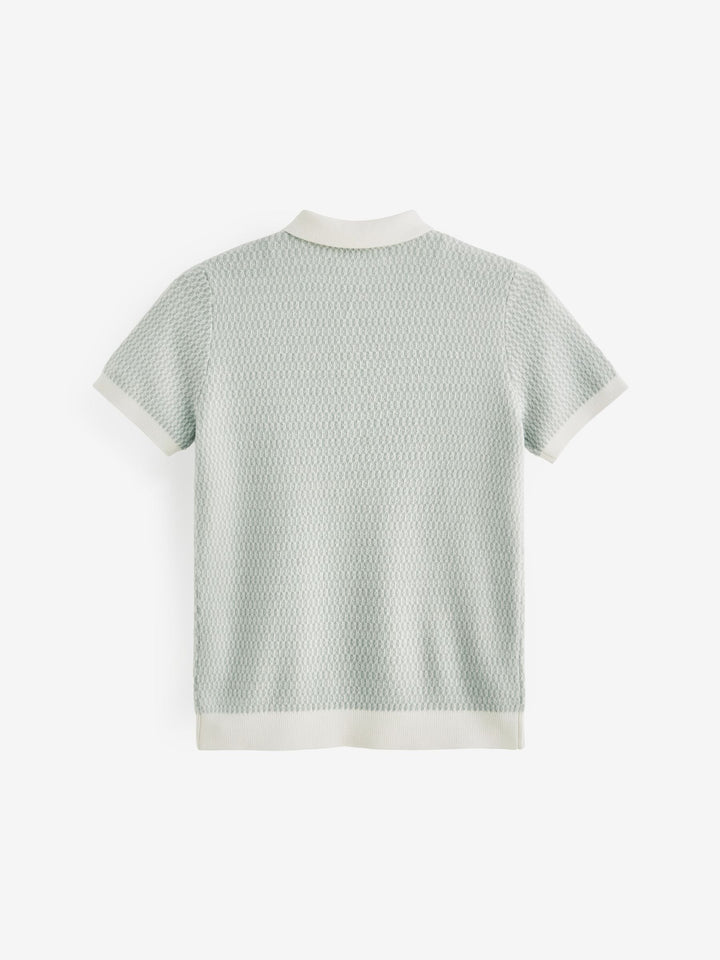 This classic blue polo shirt is crafted from a fine gauge knit cotton for a textured feel, featuring a geometric pattern, a button-up neck with a plain placket leading to a classic collar and ribbed hems. Regular fit 100% Cotton Fine gauge knit Geometric pattern Button-up neck Classic collar 100% Cotton. Country of Origin: Myanmar