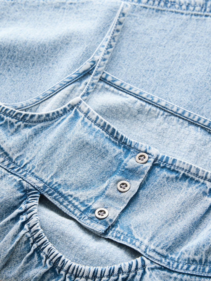 Blue 100% Cotton Strappy Denim Dress (3-16yrs)