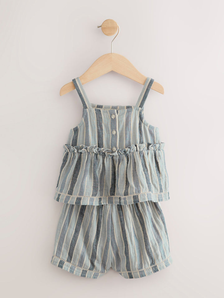 Redefine her summer style with this top and shorts set. Made from pure cotton, this stylish set contains a sleeveless top with pleated detailing and a pair of elasticated shorts. Comfortable and cool, pair with trainers or sandals for a complete look. 100% cotton 2 piece set Sleeveless top Elasticated shorts Blouse and Shorts 100% Cotton. Country of Origin: India