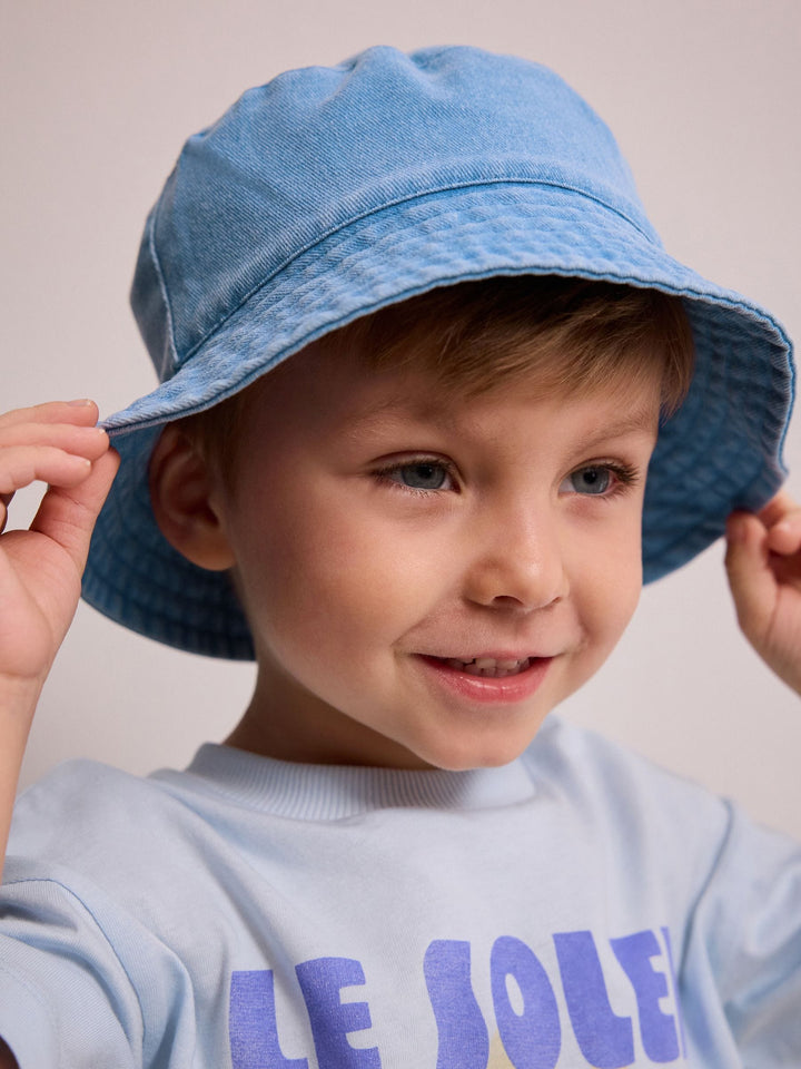 Blue 100% Cotton Washed Bucket Hat (3mths-16yrs)