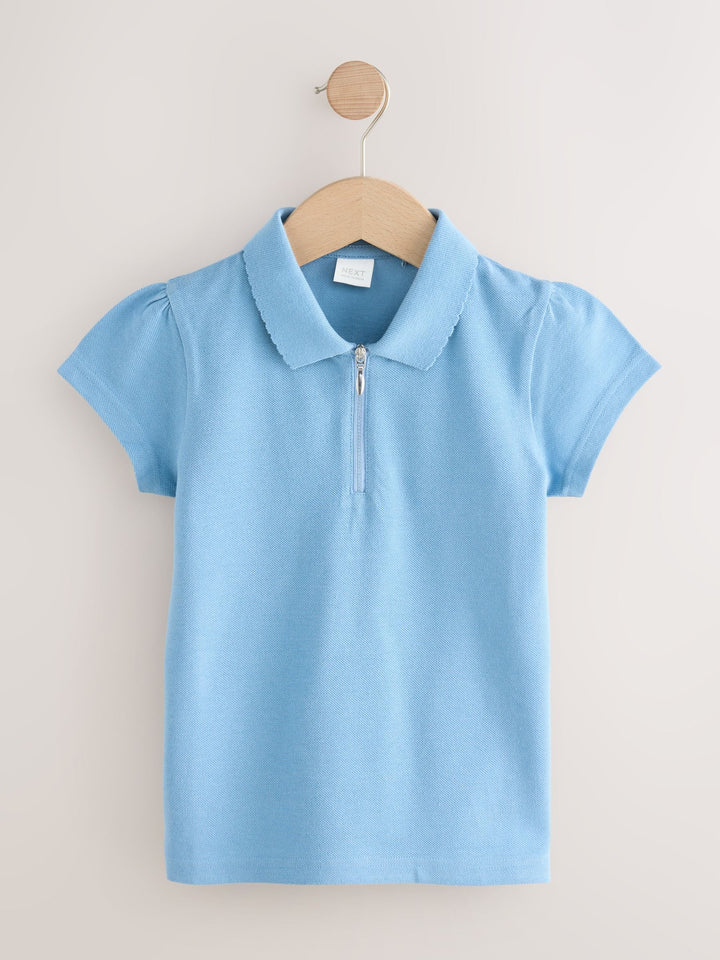 Blue 2 Pack 100% Cotton Zip Polo Shirts (3-16yrs)