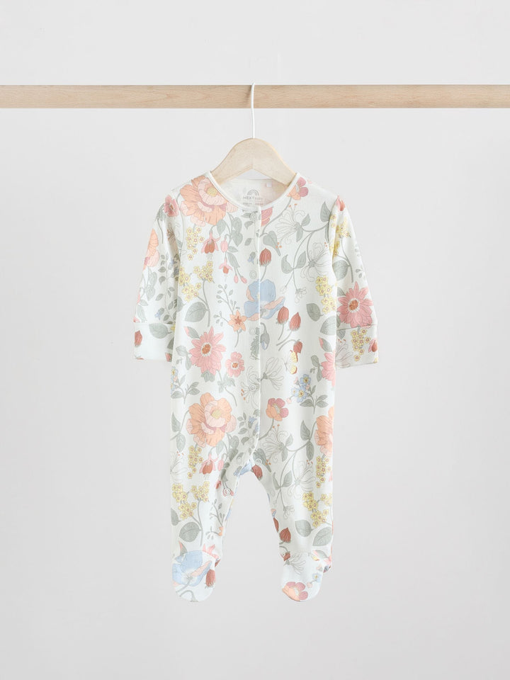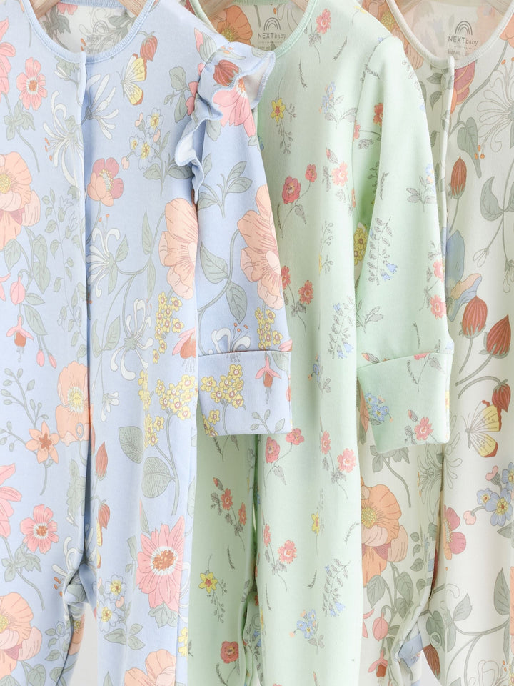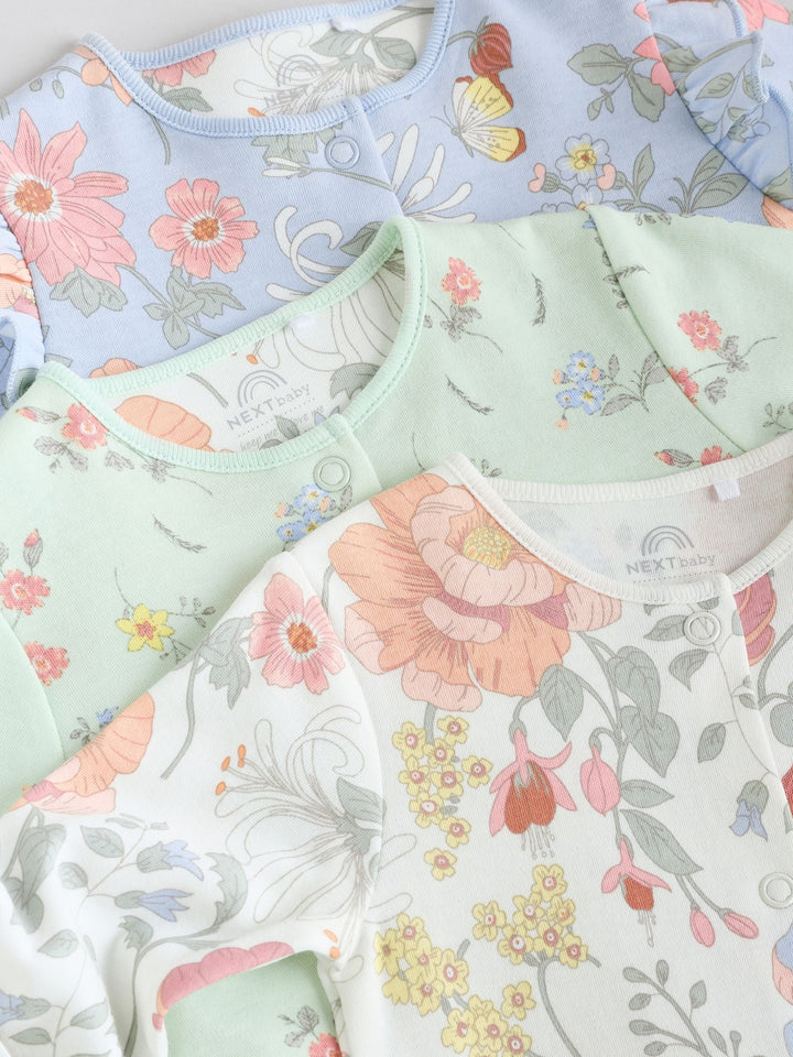 Stock up baby essentials with this three pack of sleepsuits. Made from pure cotton, each piece is coated in a fun floral print and complete with long sleeves, popper fastening and frill detailing. Pack of 3 100% cotton Floral print Popper fastening Machine washable. 3 x Sleepsuit 100% Cotton. Country of Origin: Vietnam Warning: Keep away from fire and flames.