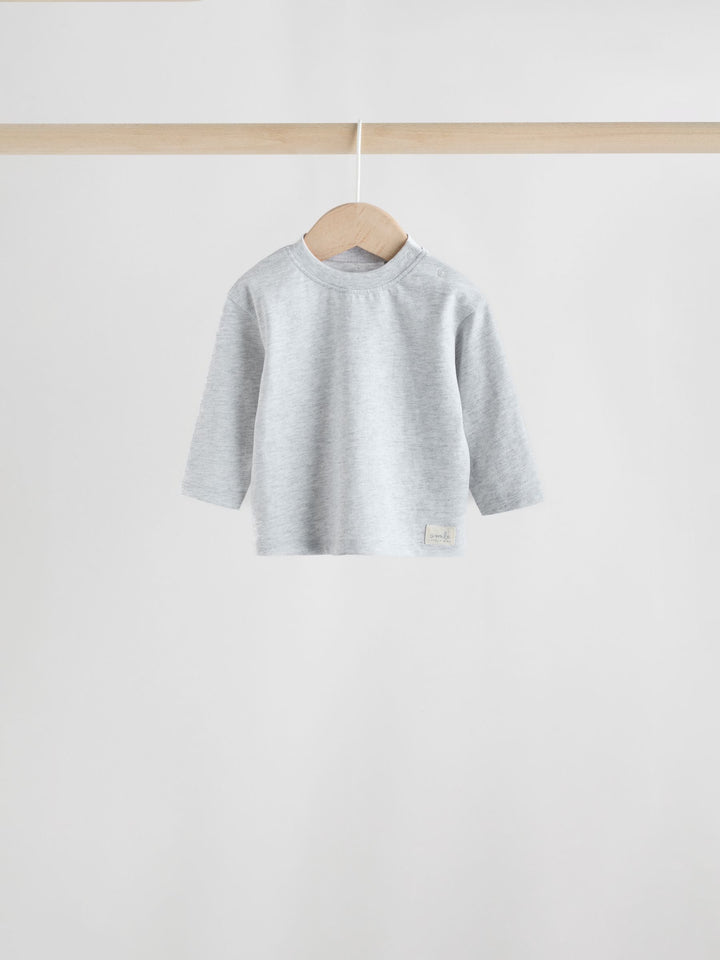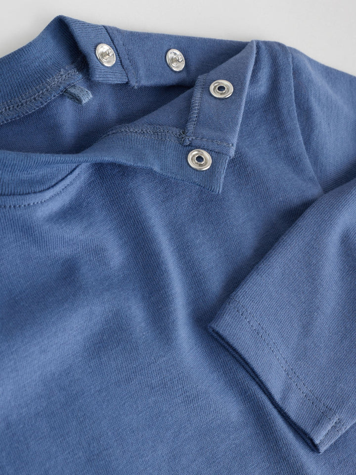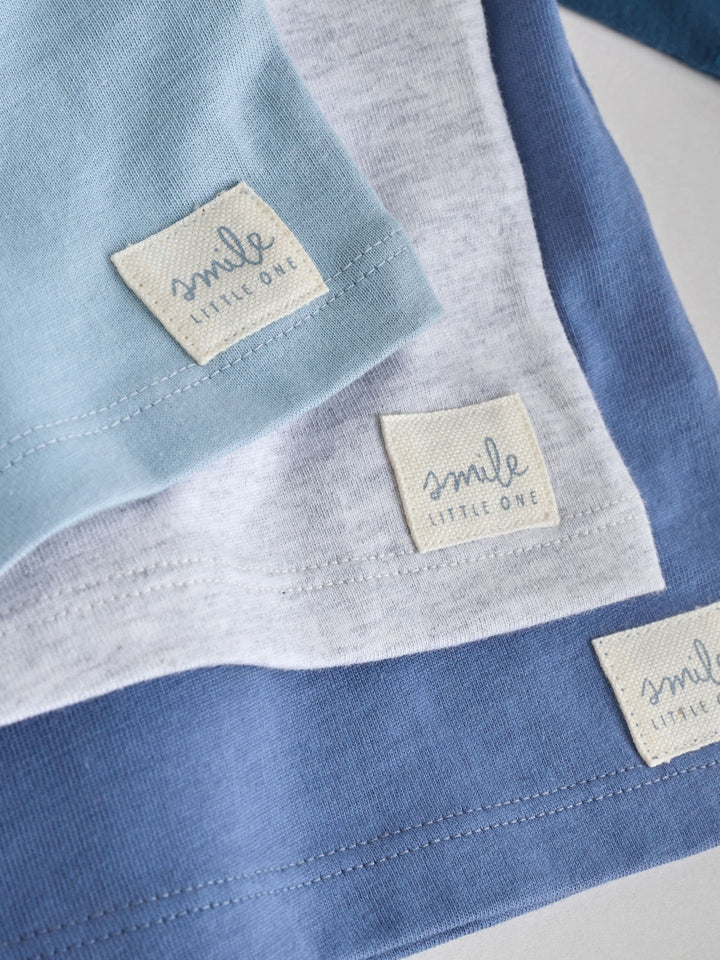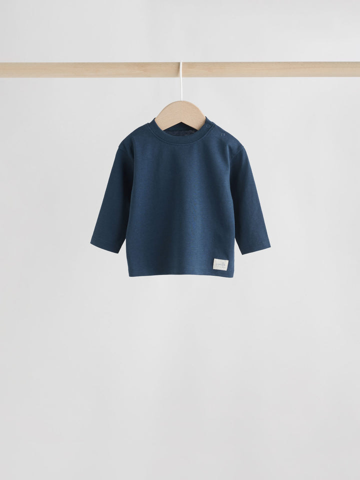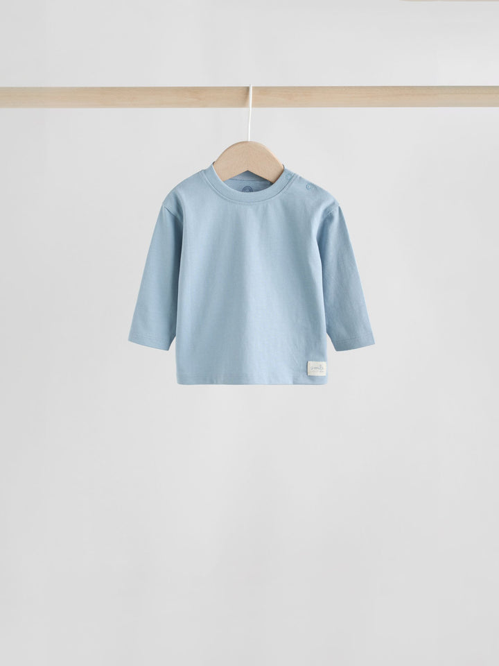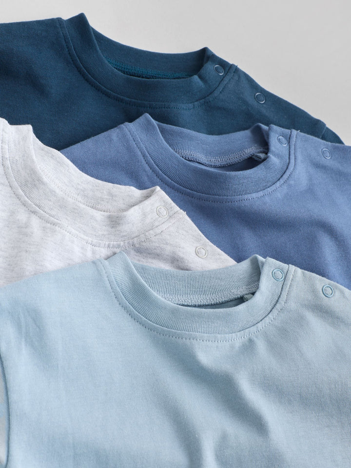 Keep their essentials stocked up with this convenient 4 pack of long-sleeve T-shirts in blue. Made from pure cotton, they are available in a selection of colours and feature a popper fastening at the shoulder for easy dressing. A practical and comfortable choice for all-day wear. 4-pack Pure cotton Popper fastening at shoulder Long sleeve Machine washable Machine washable. 4 x T-shirt 100% Organic cotton. Country of Origin: Bangladesh Warning: Keep away from fire and flames.