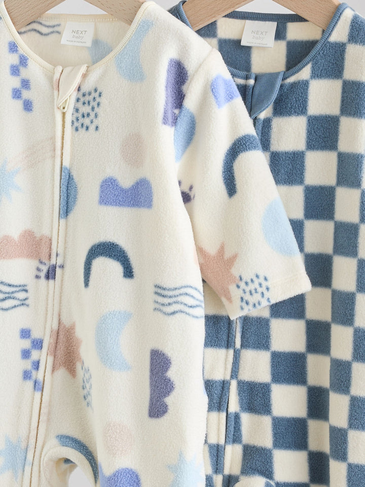 Blue Baby Micro Fleece Two Way Zip Sleepsuits 2 Pack