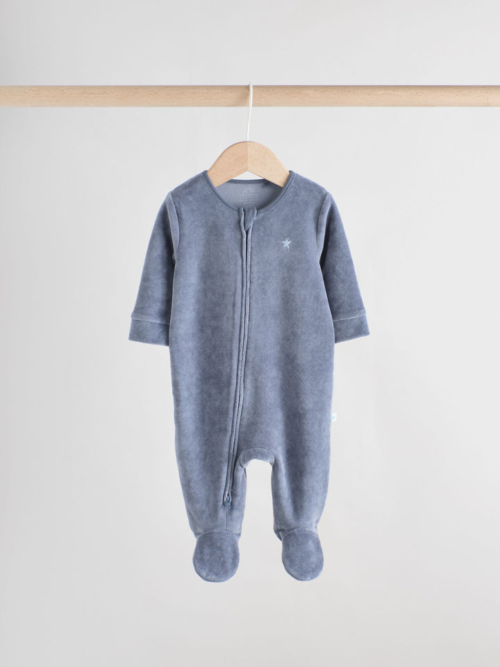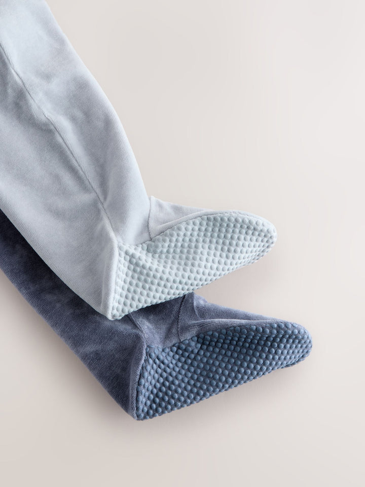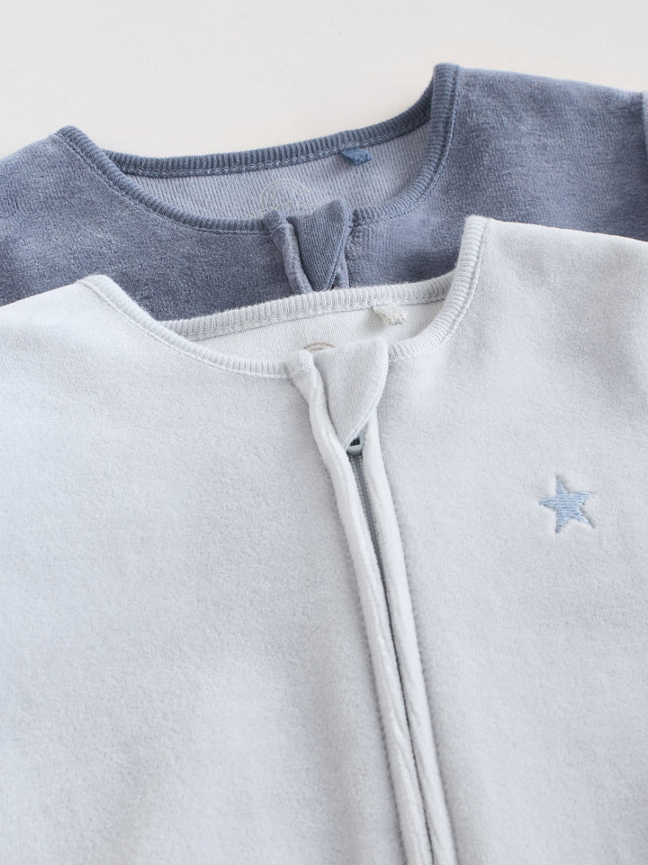 Blue Baby Velour Two Way Zip Sleepsuits 2 Pack (0mths-2yrs)