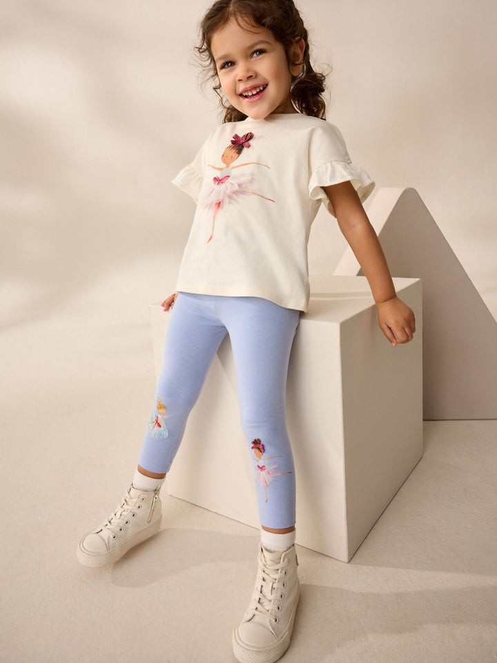 Twirl into summer with our ballerina leggings. In a cotton rich blend with added stretch, these blue leggings are embellished with 3D ballerinas on the bottom for a cute finish. Cotton rich Elasticated waistband 3D ballerina design Machine washable. 92% Cotton, 8% Elastane. Country of Origin: Bangladesh