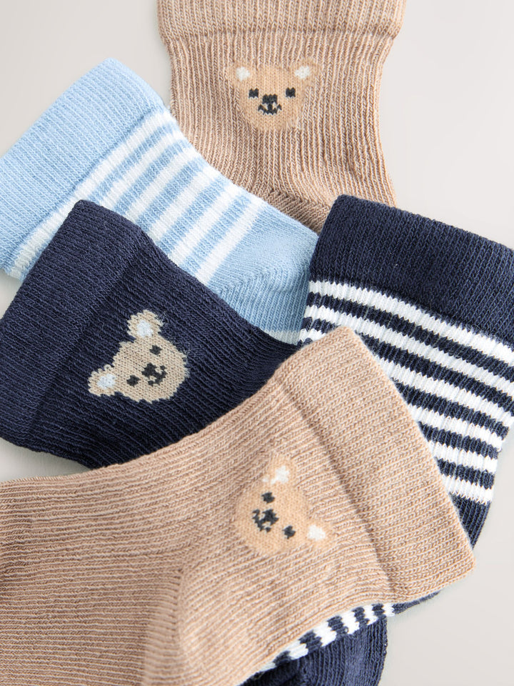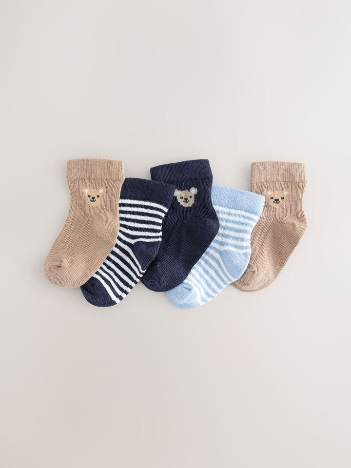 This hand 5-pack of baby socks have a soft and comfortable construction with a ribbed hem and layered toe and heel panel. Perfect for refreshing their sock rotation. 5-pack Ribbed hem Layered toe and heel Free from harmful dyes or chemicals Machine washable. 5 x Socks 75% Cotton, 23% Nylon, 2% Lycra® Elastane. Country of Origin: Turkey Warning: Keep away from fire and flames.