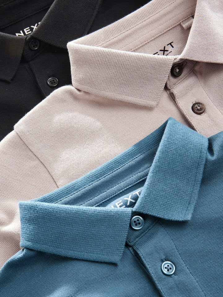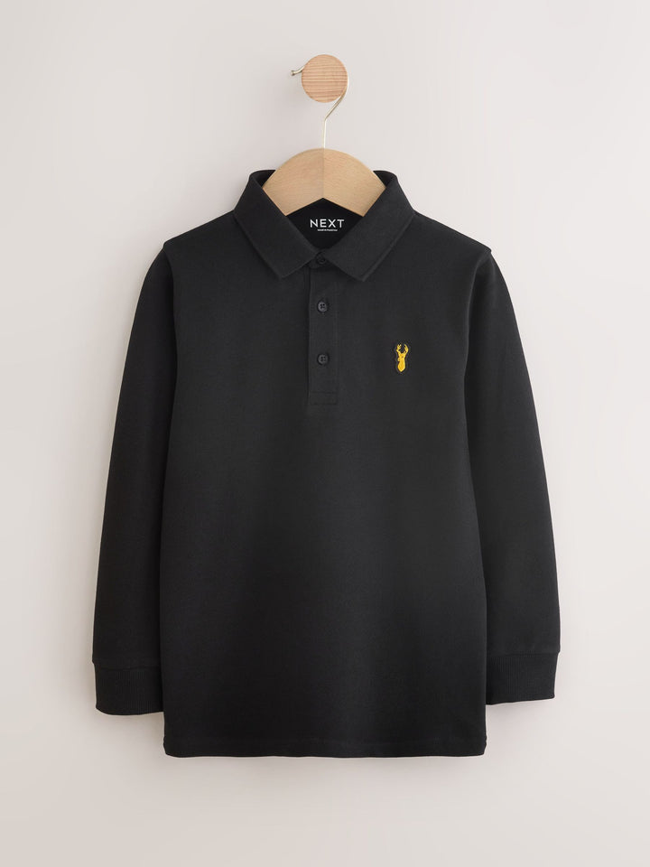 Blue/Black/Grey Long Sleeve Polo Shirts 3 Pack (3-16yrs)