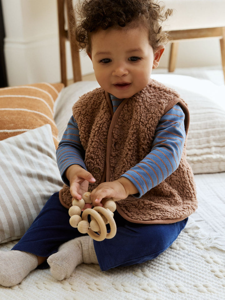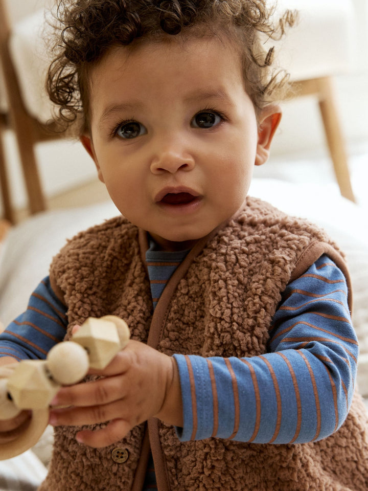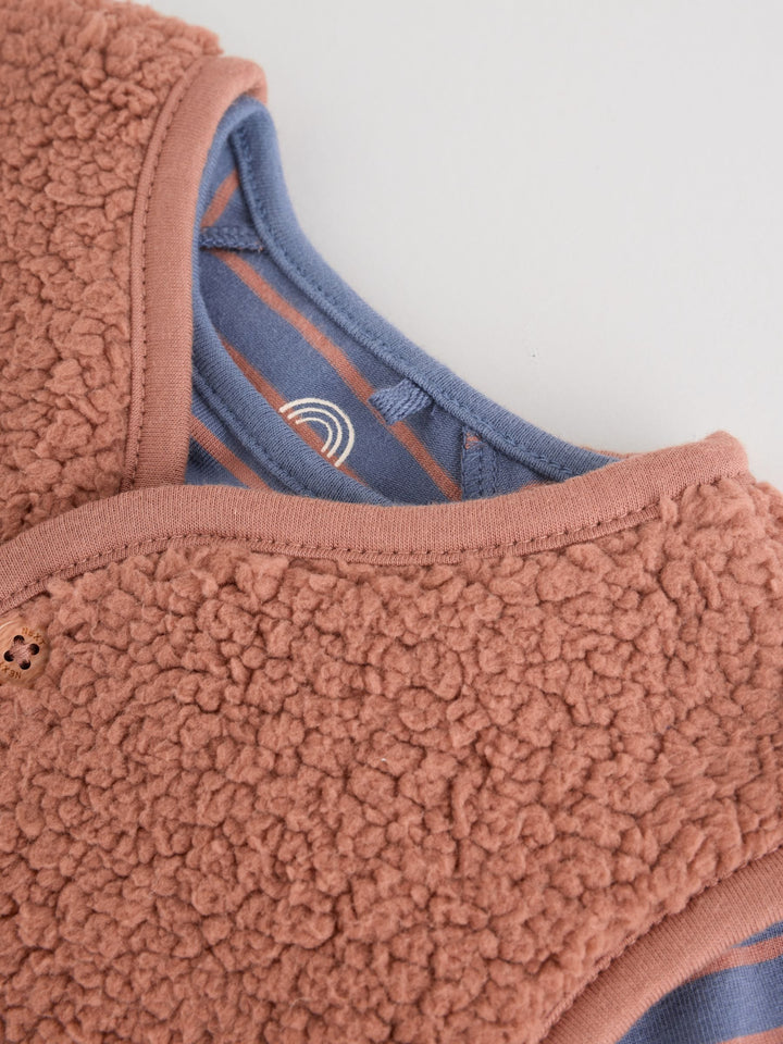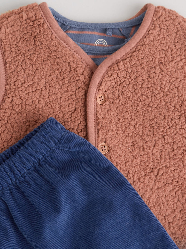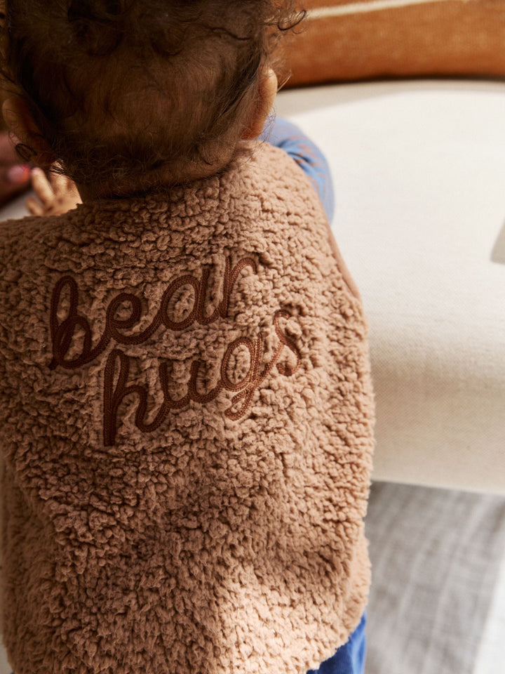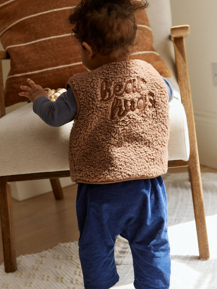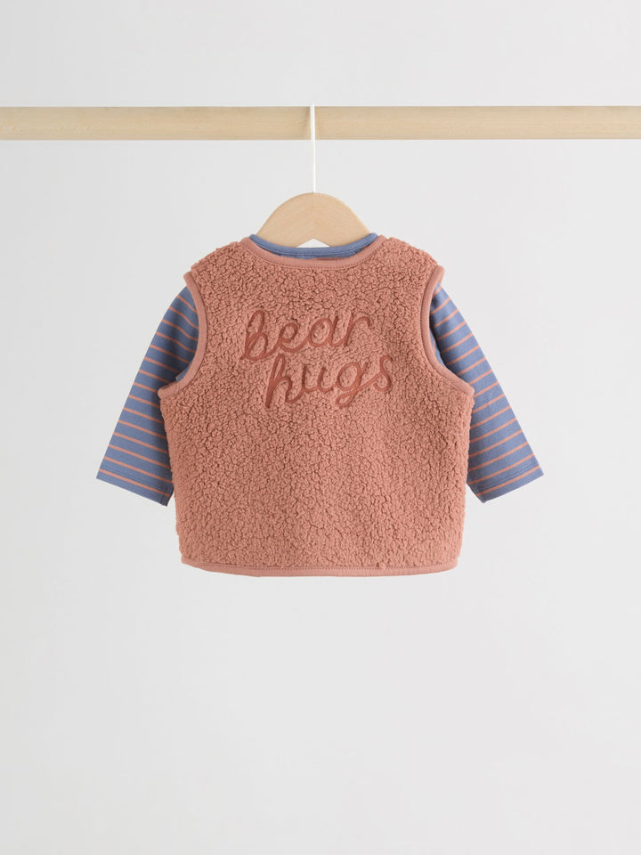 Blue/Brown Bear Hugs Slogan Borg Baby Gilet Top and Leggings Set (0mths-2yrs)
