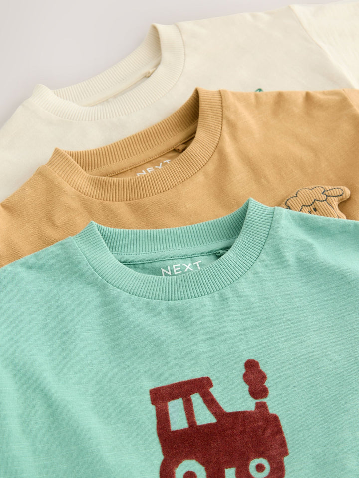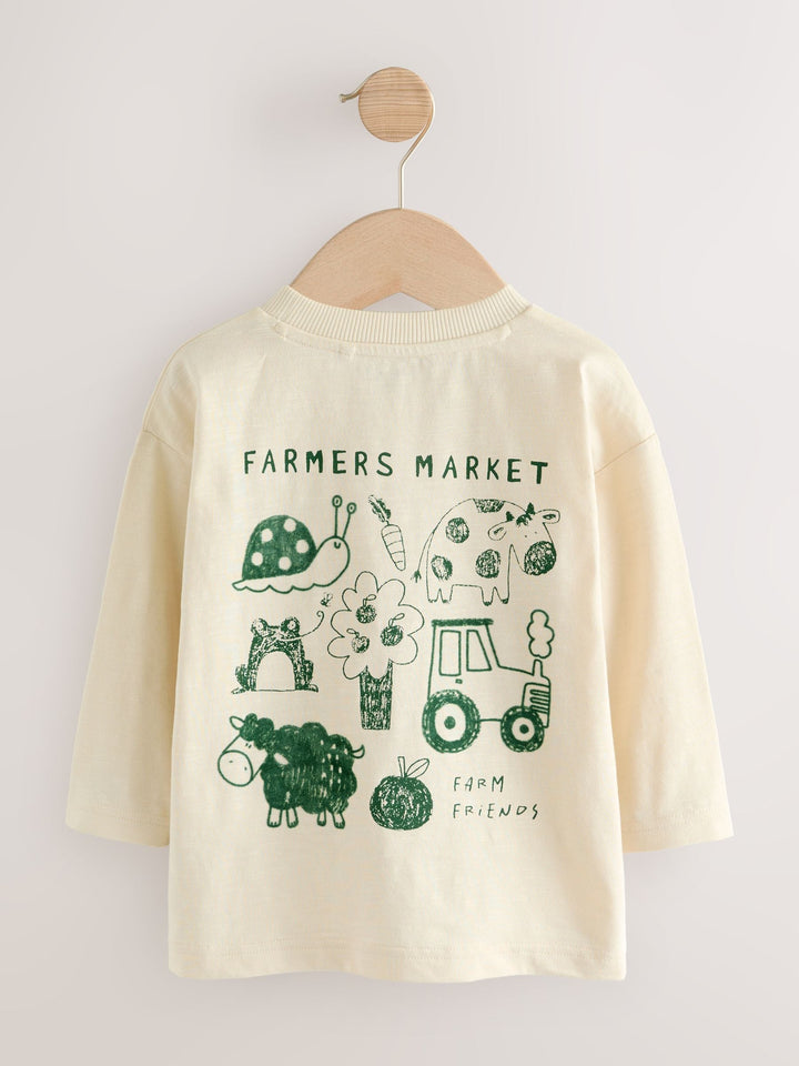 Blue/Brown Farm Long Sleeve Graphic Print T-Shirts 3 Pack (3mths-7yrs)