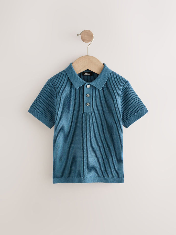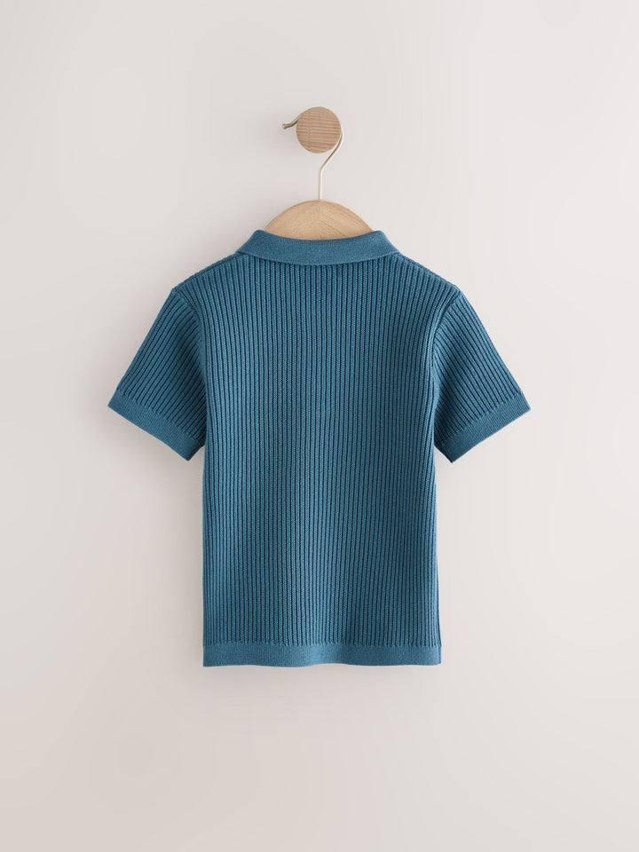 Blue Button Neck Knitted 100% Cotton Polo Shirt (3mths-7yrs)