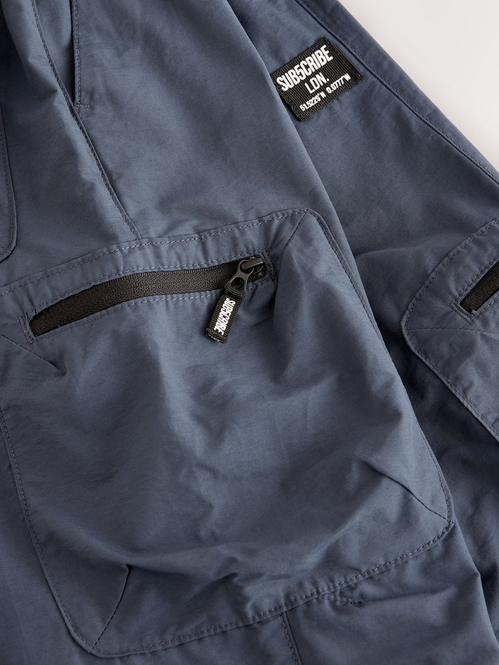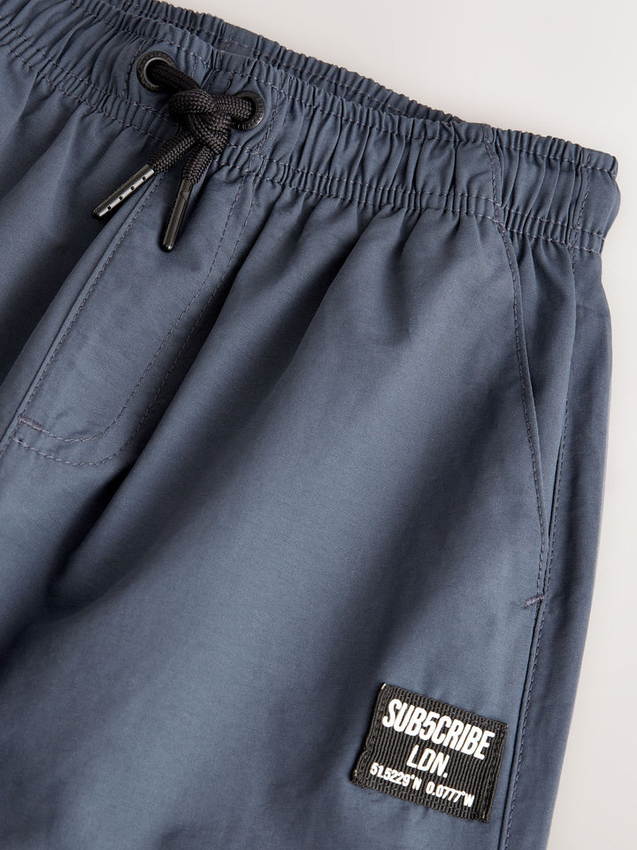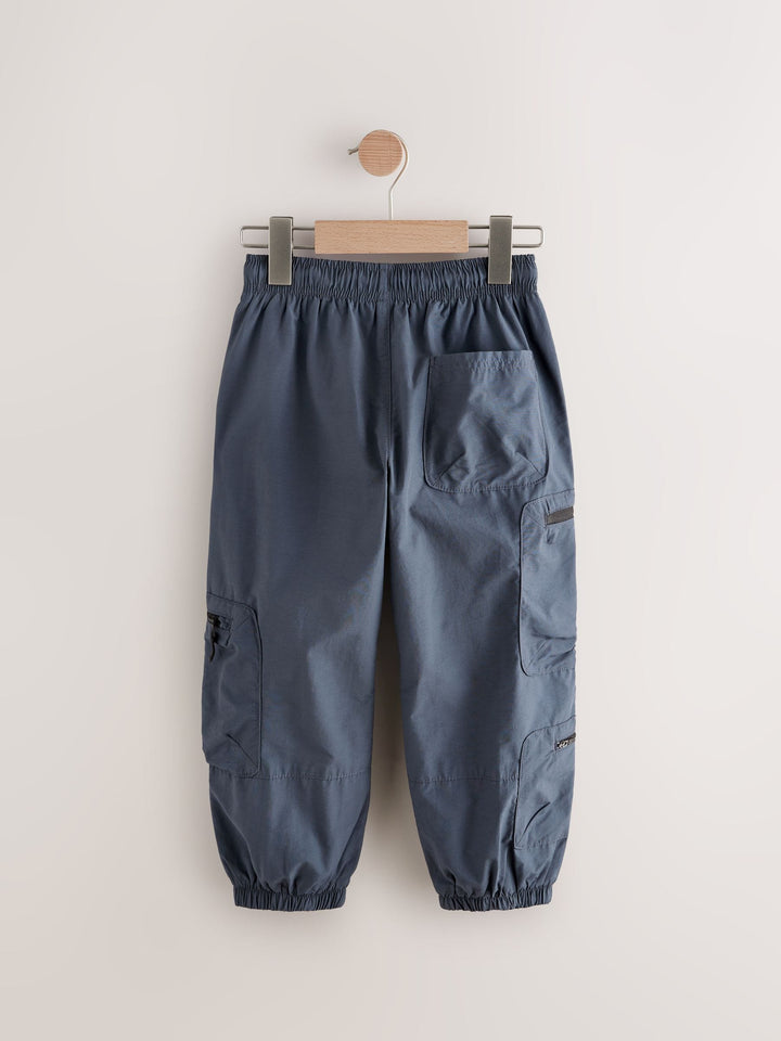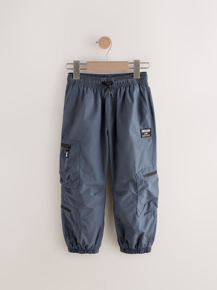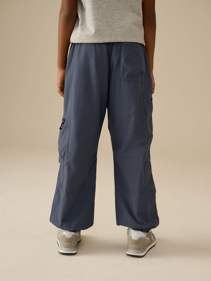 Great for everyday wear, these trendy blue trousers have a modern utility-inspired design and a wide leg, featuring an elasticated waistband for pull-on wear, cuffed ankles and multiple zip pockets, finished with rubberised branding. Wide leg Cotton-blend Pull-on elasticated waistband Zip utility pockets Rubberised branding Machine washable. Main 62% Cotton, 38% Nylon. Lining 100% Polyester. Country of Origin: Bangladesh