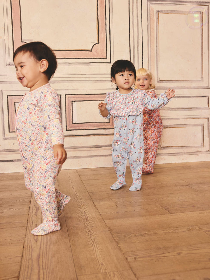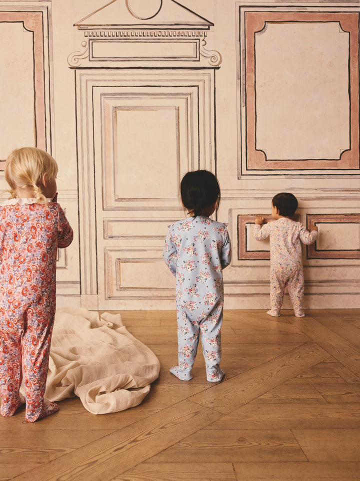 Blue Cath Kidston Floral Baby 100% Cotton Sleepsuits 3 Pack