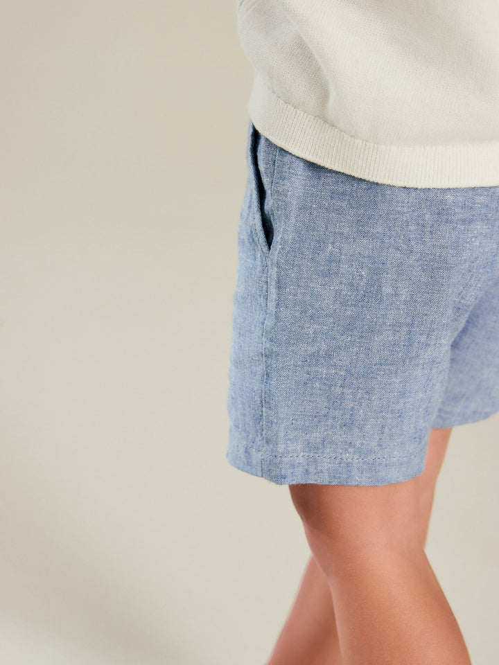 Blue Chambray Linen Blend Pull-On Shorts (3mths-7yrs)