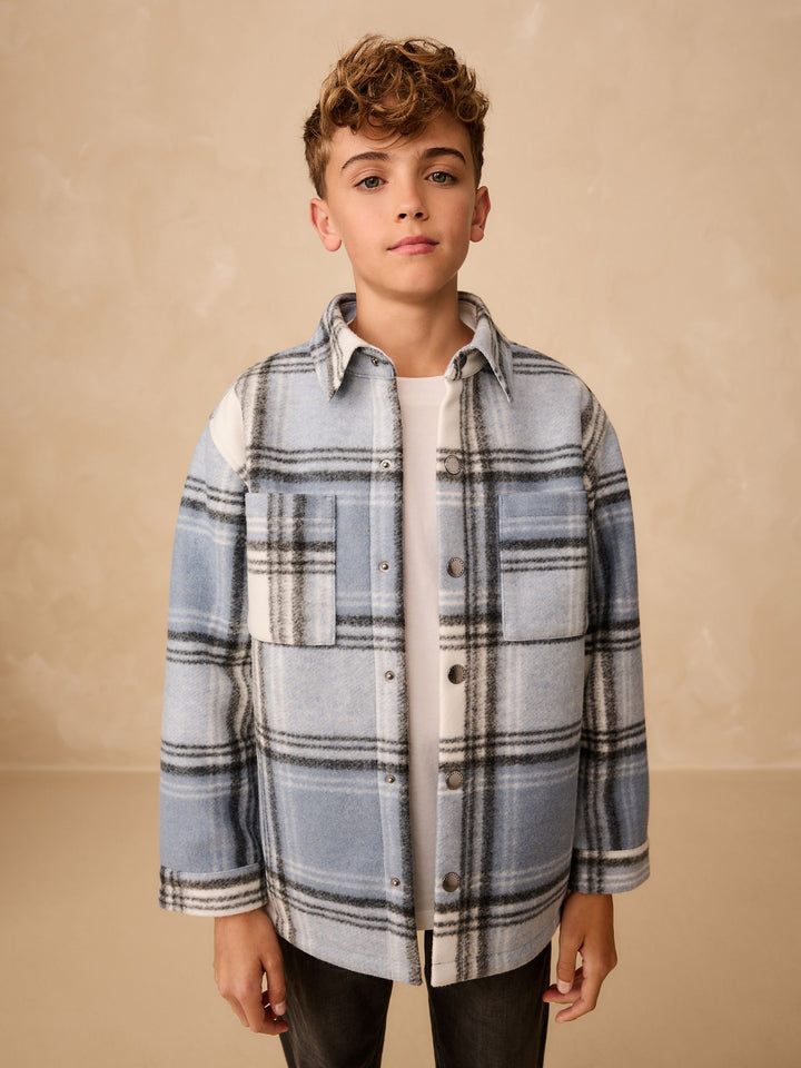 Blue Check Lined Shacket (3-16yrs)