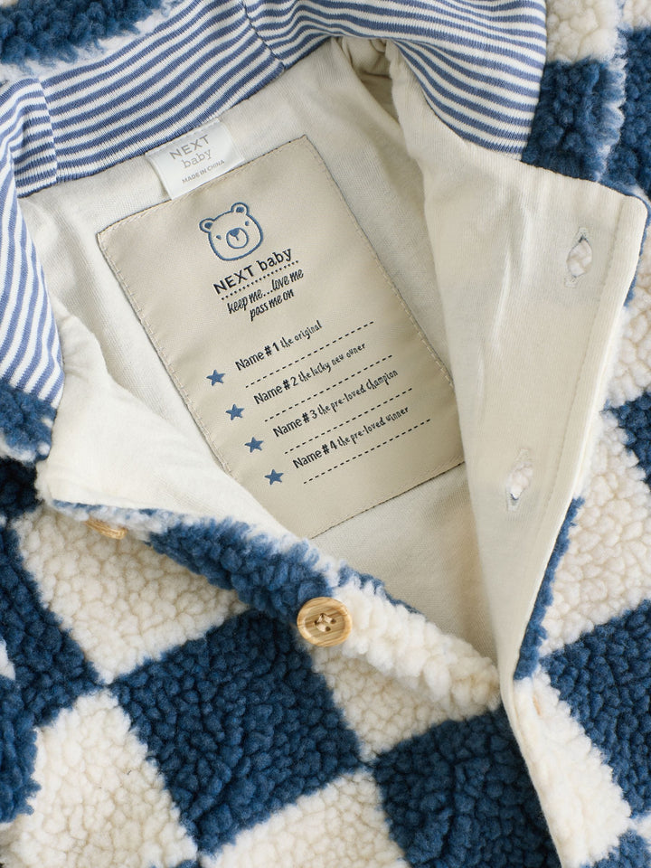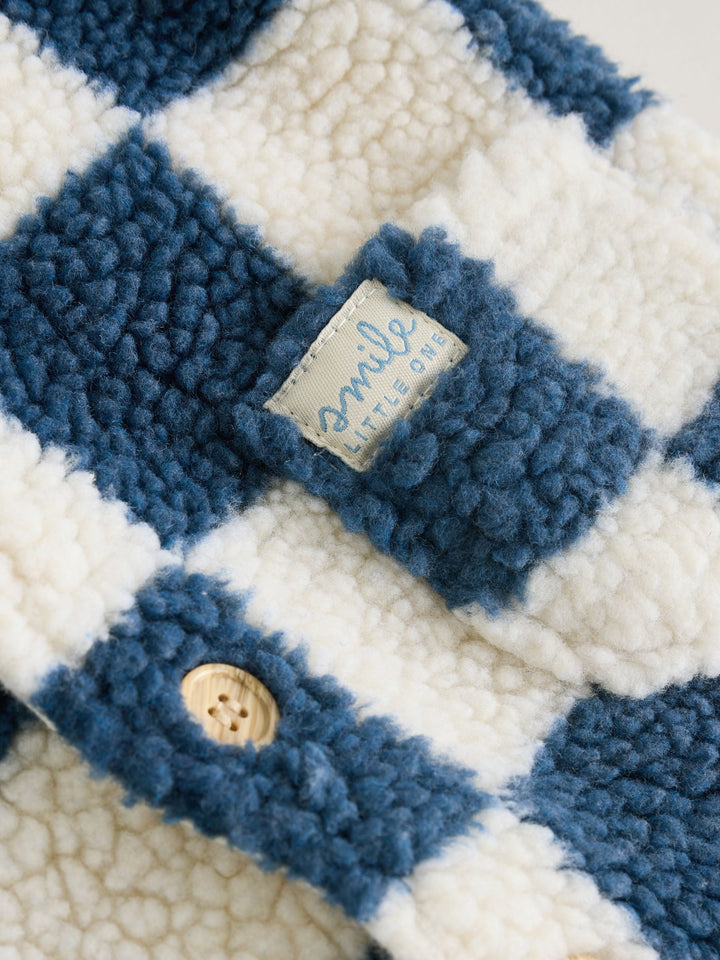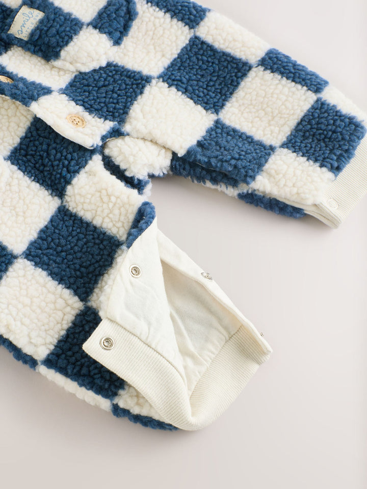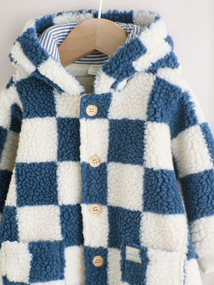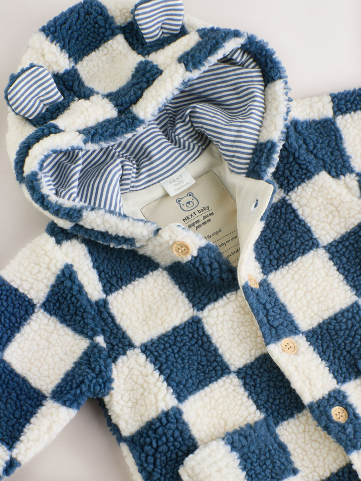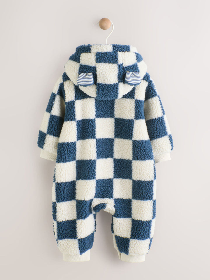 Blue Checkerboard Borg Hooded Baby Pramsuit (0mths-2yrs)