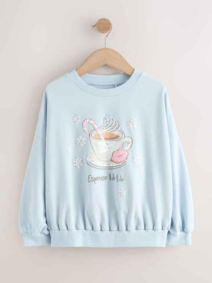 Blue Christmas Espresso Sequin Long Sleeve Sweat Top (3-16yrs)