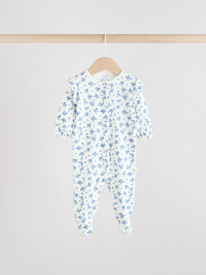 Our 3 pack of baby sleepsuits make charming addition to their collection. Featuring an array of pretty floral prints, they're complete with popper fastening, long sleeves and frill detailing. 3 pack 100% cotton Popper fastening Floral print Long sleeves Machine washable. 3 x Sleepsuit 100% Cotton. Country of Origin: Sri Lanka Warning: Keep away from fire and flames.