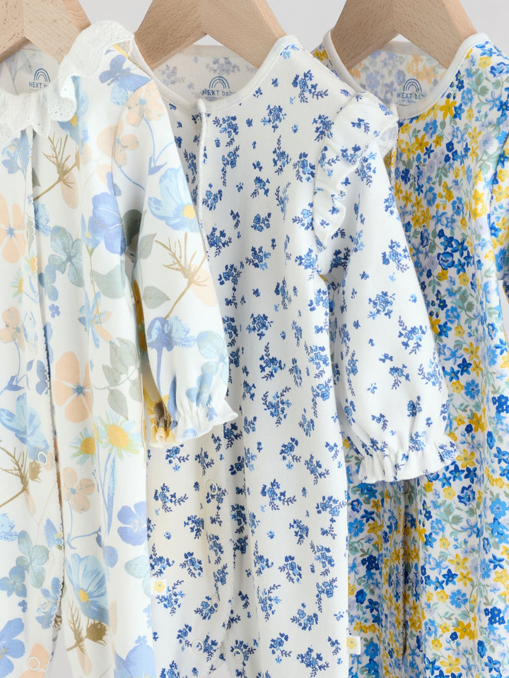 Blue Collar 3 Pack Baby Sleepsuits (0-2yrs)
