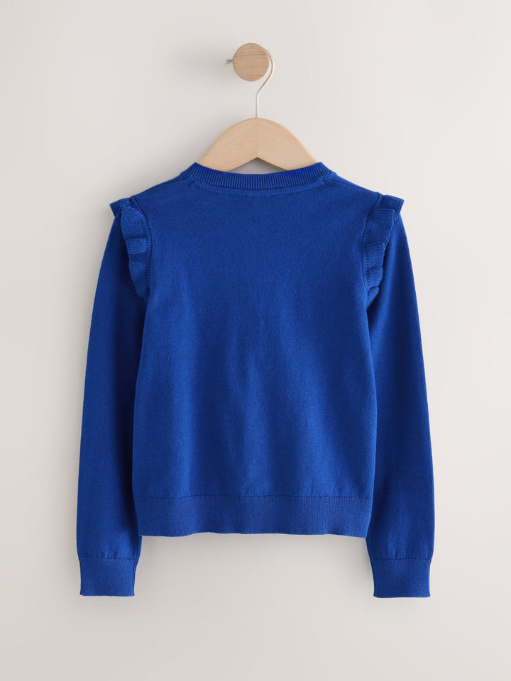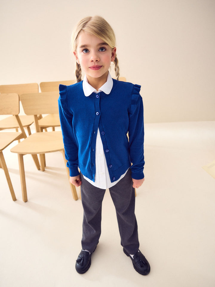 Blue Cotton Rich Frill Shoulder School Cardigan (3-16yrs)
