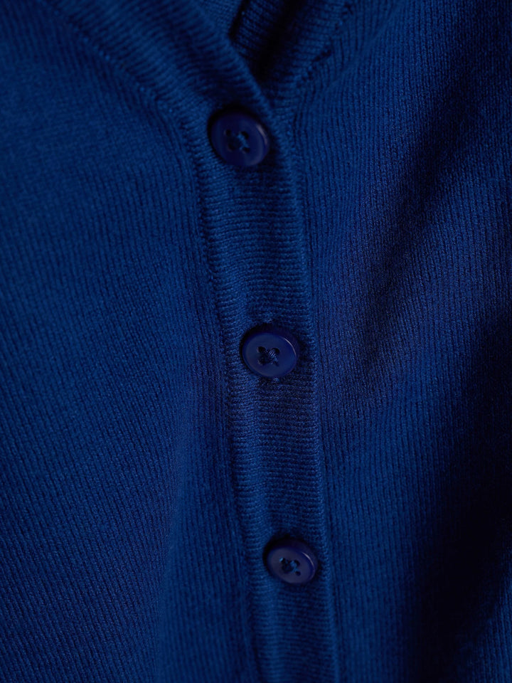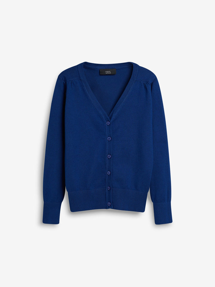 Layering perfection, this blue V-neck cardigan is made from a rich-cotton blend for ultimate comfort and breathability throughout the hectic school day – an all-year-round staple. Key features: Lasting Colour - Lasting colour properties to ensure colours stay vibrant and bright wash after wash. Cotton Rich - Cotton rich blend for ultimate comfort and breathability. Button-through V-neck style Machine washable Machine washable. 80% Cotton, 20% Nylon. Country of Origin: Bangladesh