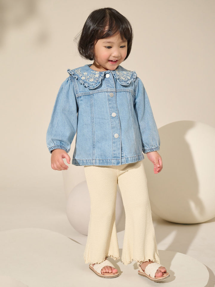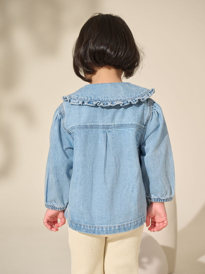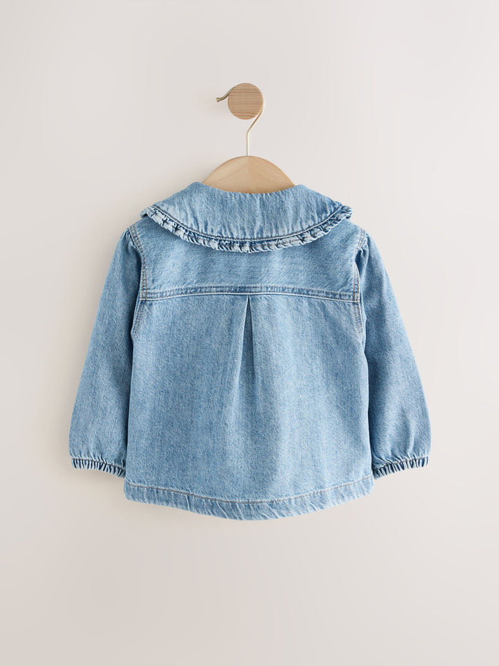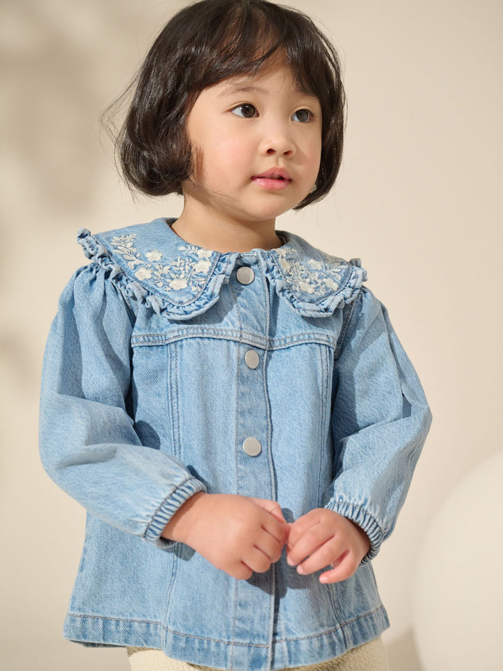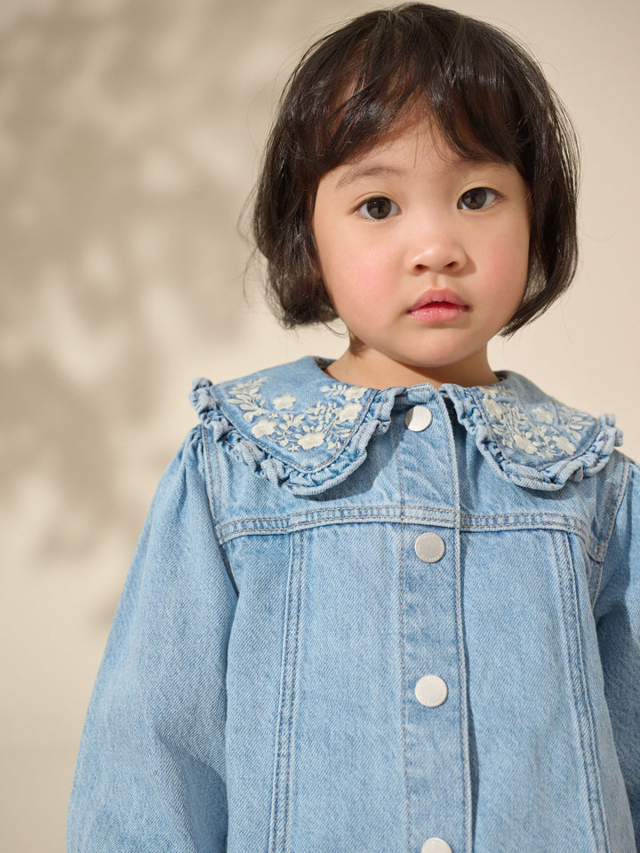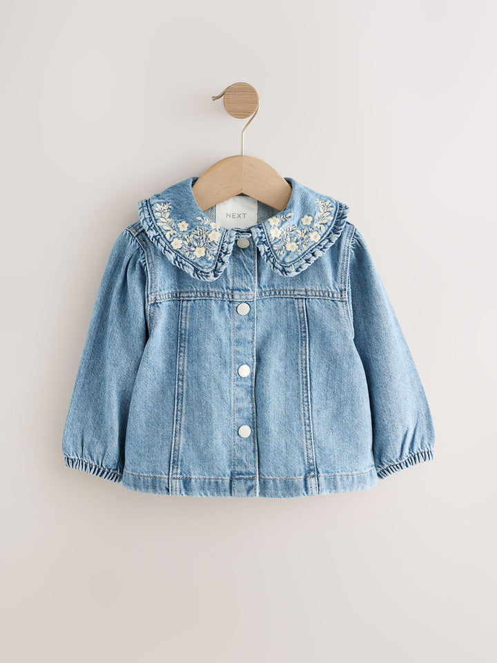 Blue Denim 100% Cotton Embroidered Frill Collar Jacket (3mths-7yrs)