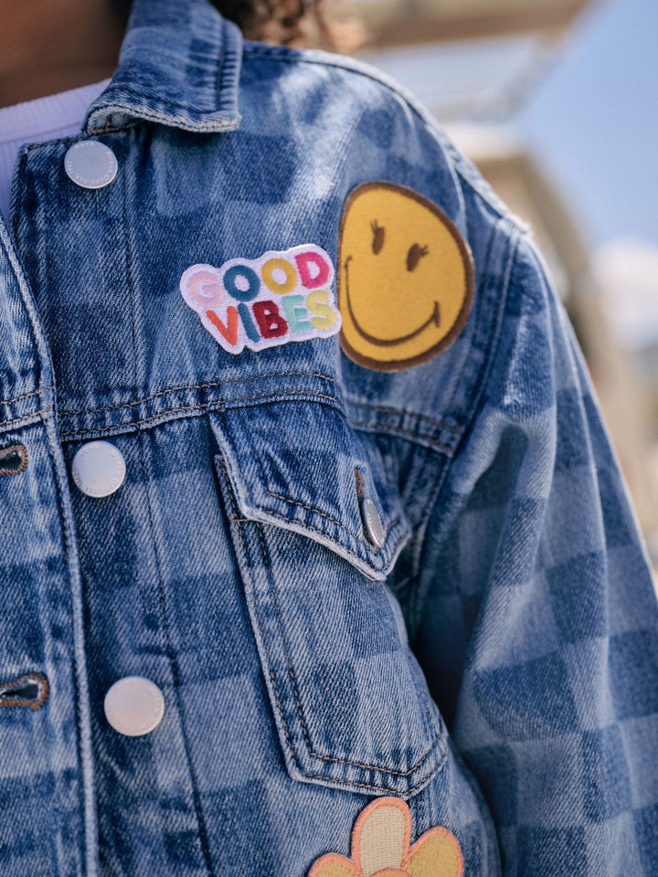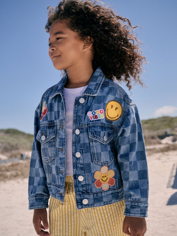 Our blue Smiley World denim jacket is made from pure cotton and cut in a boxy fit. With a checkerboard base that's graced with Smileyworld badges, it's complete with chest pockets and button-up fastening. 100% cotton Button-up fastening Smileyworld badges Chest pockets Boxy fit Machine washable. 100% Cotton. Country of Origin: Bangladesh