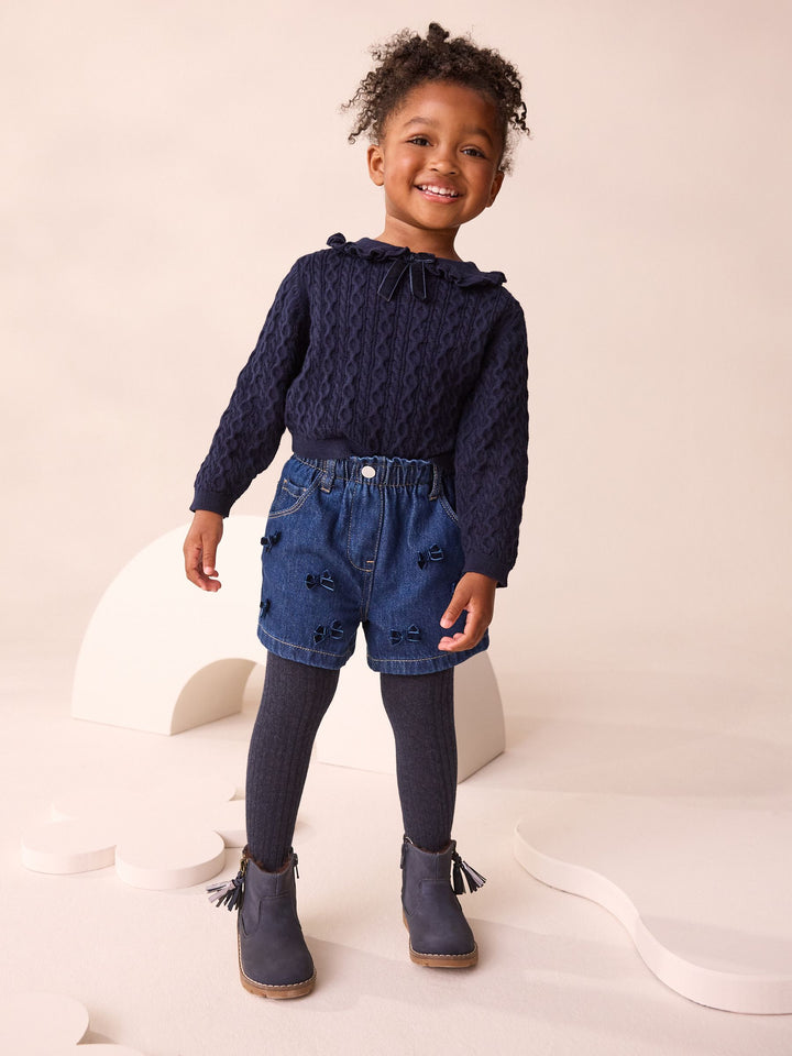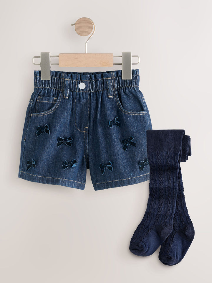 Blue Denim Denim Bow Shorts and Tights (3mths-7yrs)