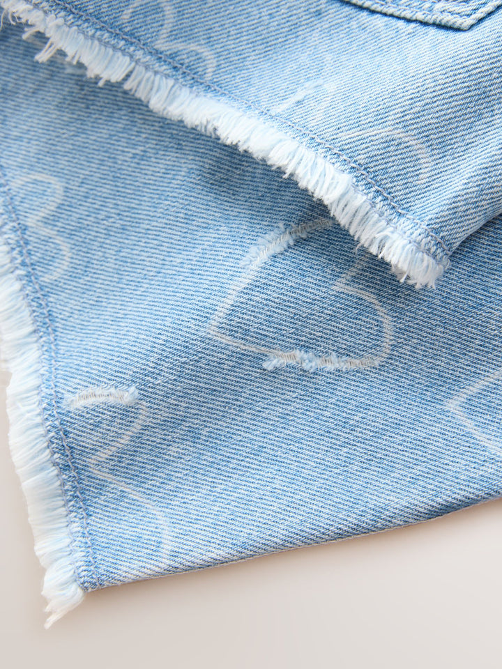 Blue Denim Regular Length Frayed Edge Denim Shorts (3-16yrs)