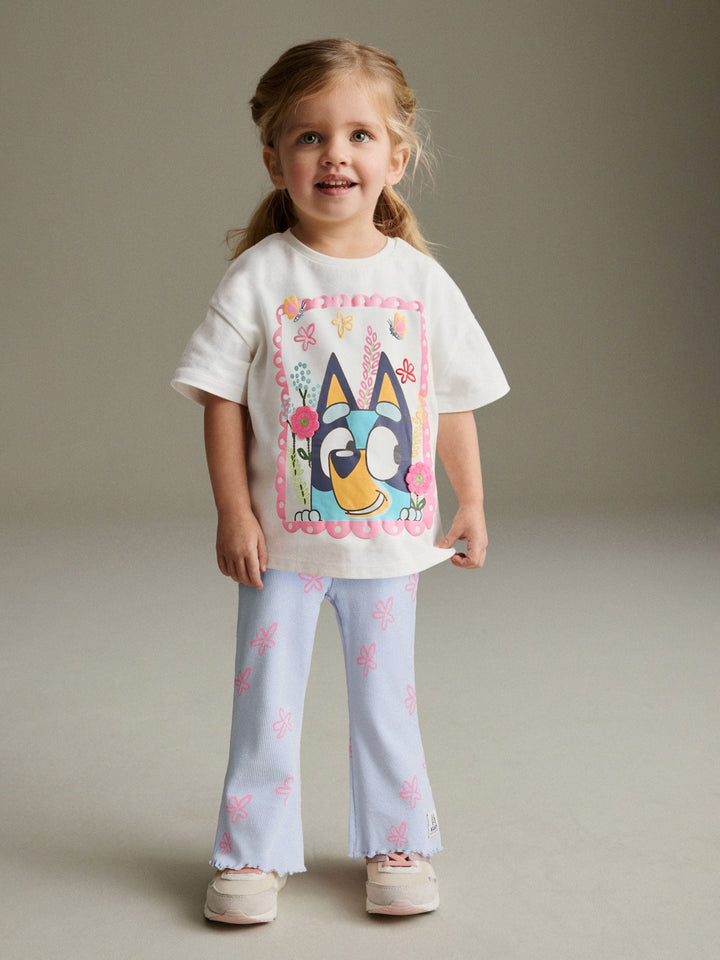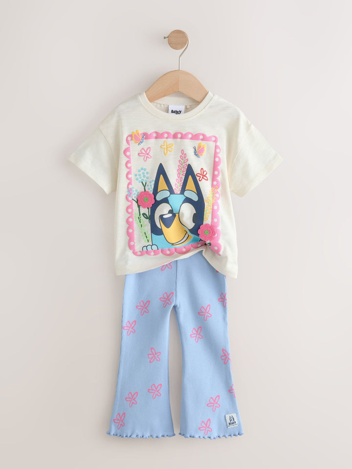 Blue/Ecru Bluey Short Sleeve T Shirt and Flare Leggings Set (3mths-7yrs)