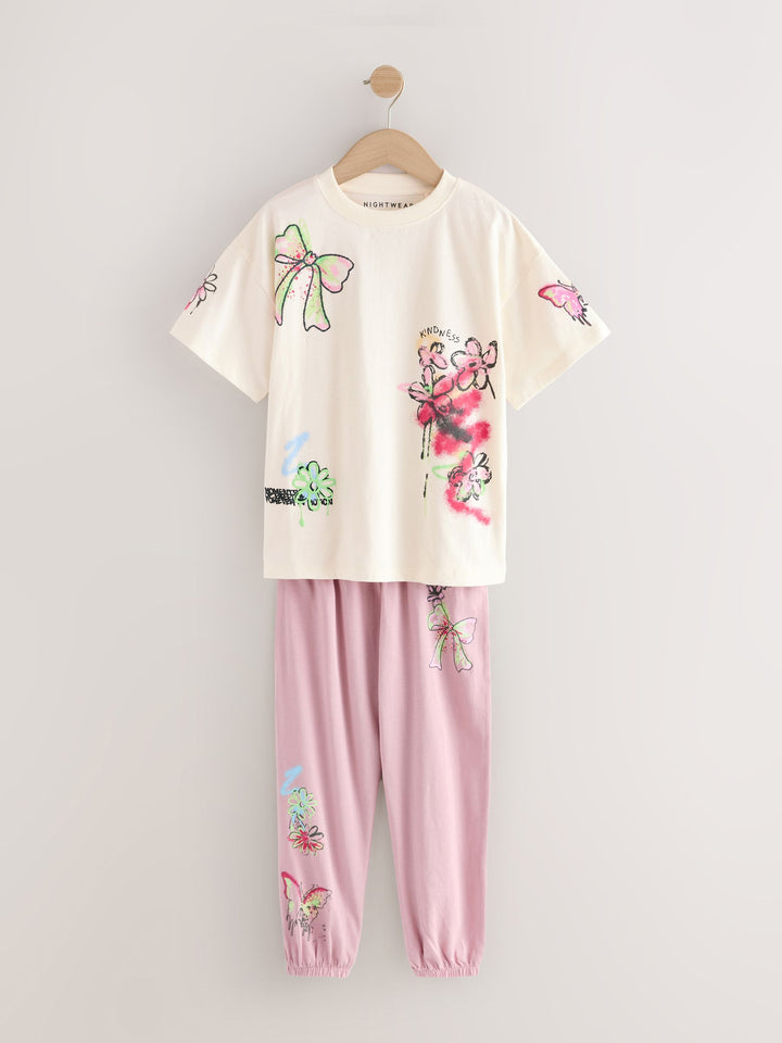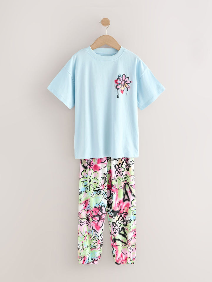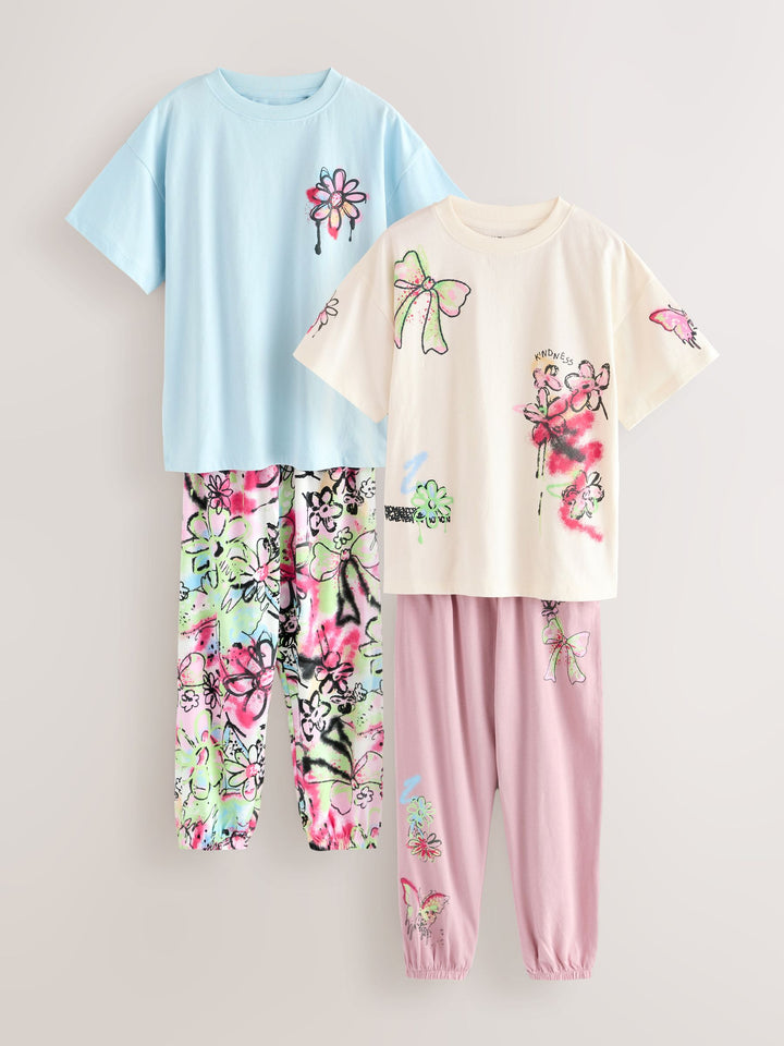 Blue/Ecru Grafitti Bow Jogger Pyjamas 2 Pack (3-16yrs)