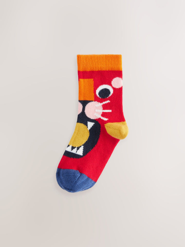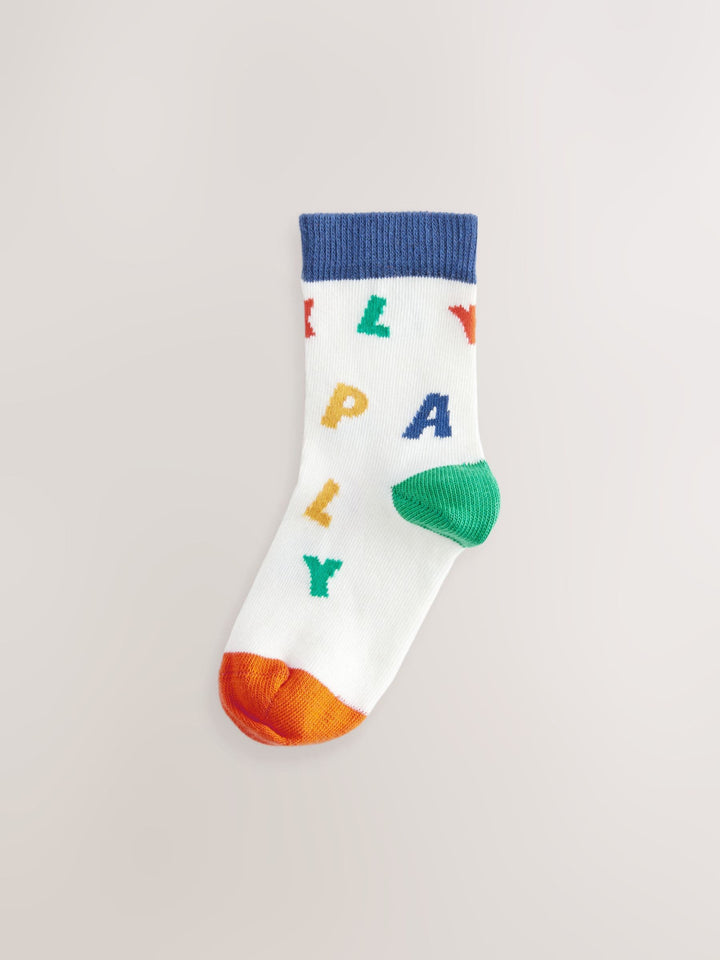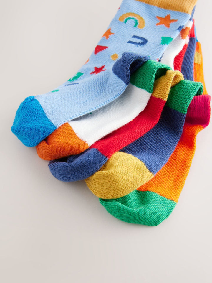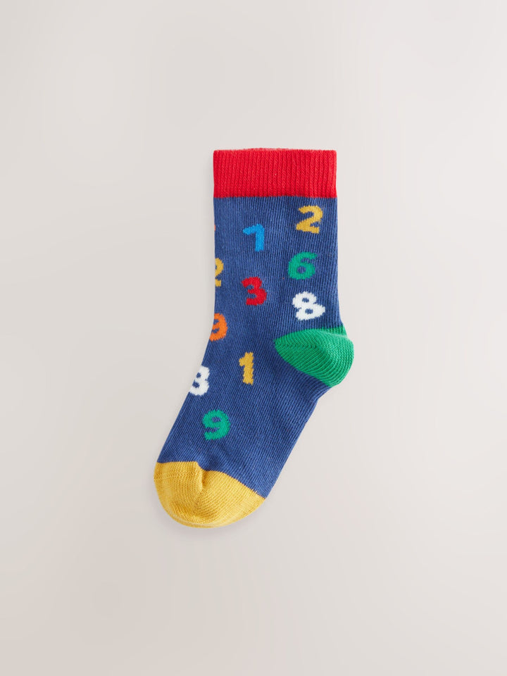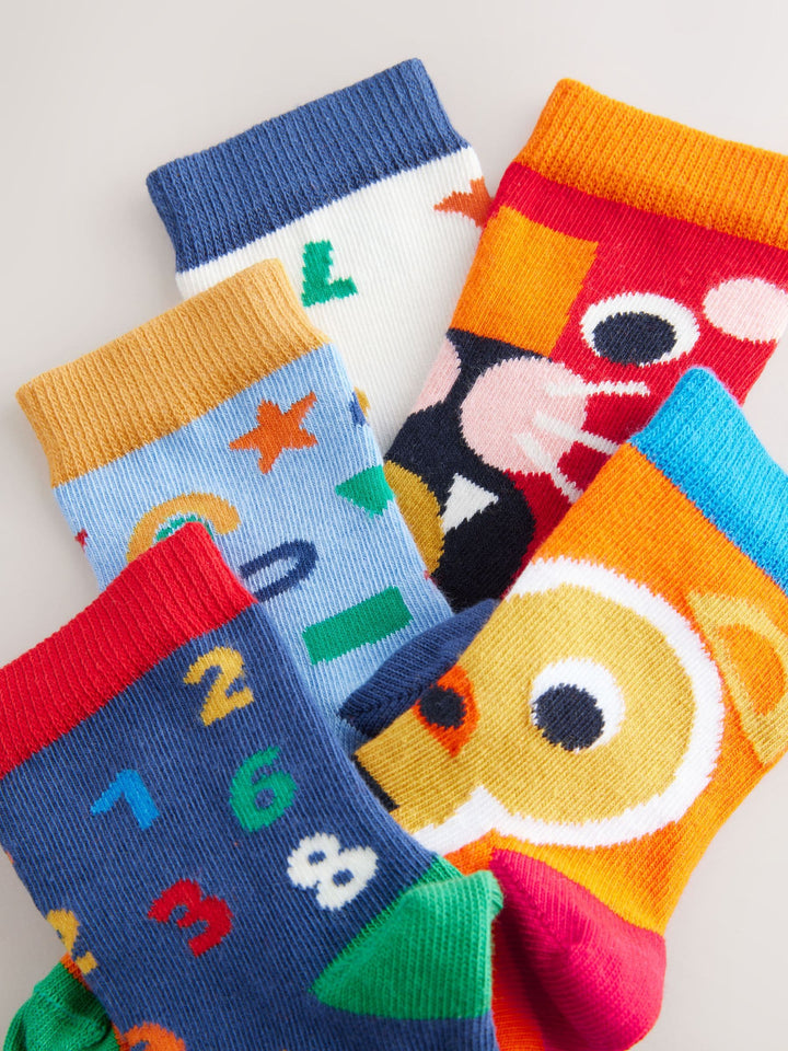 Blue/Ecru/Red Nursery Alphabet Print Rich Socks 5 Pack