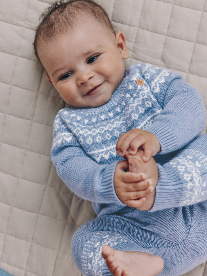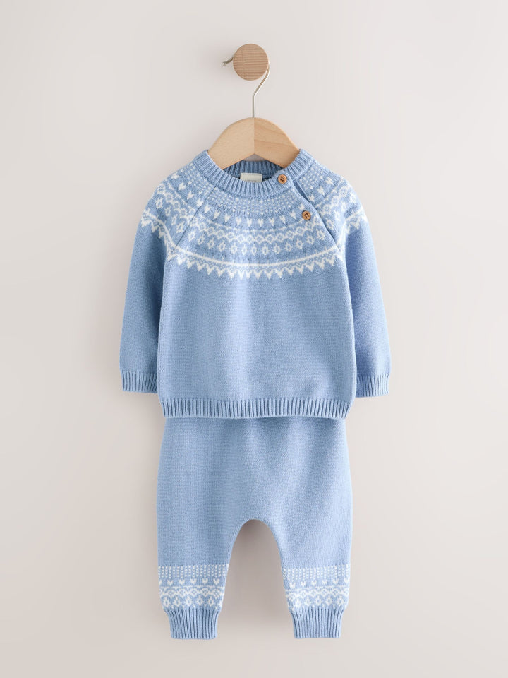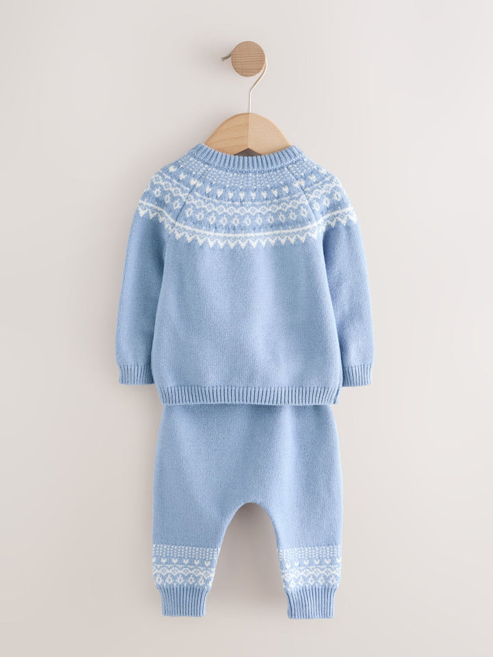 Blue Fairisle Baby Knitted Top and Leggings Set (0mths-2yrs)