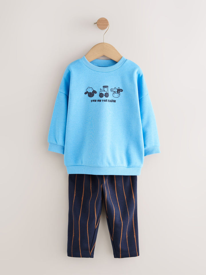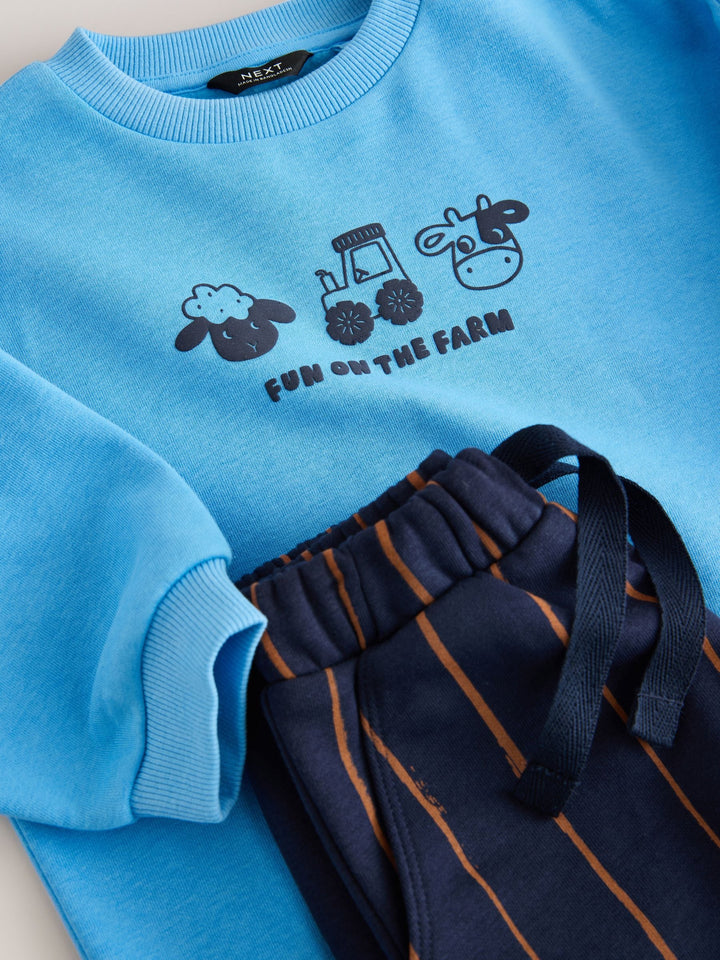 Blue Farm Animal Single Sweatshirt And Stripe Joggers Set (3mths-7yrs)