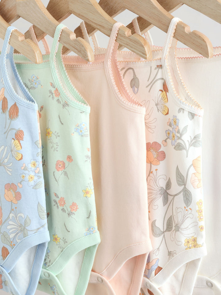 Update their warm-weather essentials with our strappy vest bodysuits. In a handy 5 pack, they are crafted from super soft cotton with popper fastenings to bottom. Made with no harmful chemicals or dyes and nickel free poppers for your peace of mind. Strappy bodysuits 5 pack 100% cotton Nickel free poppers No harmful dyes or chemicals Machine washable. 5 x Bodysuit 100% Cotton. Country of Origin: Vietnam Warning: Keep away from fire and flames.