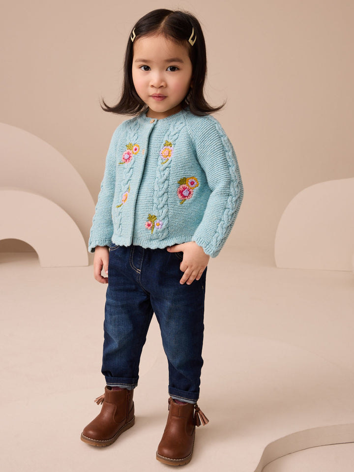 Blue Floral Print Embellished Cardigan (3mths-7yrs)
