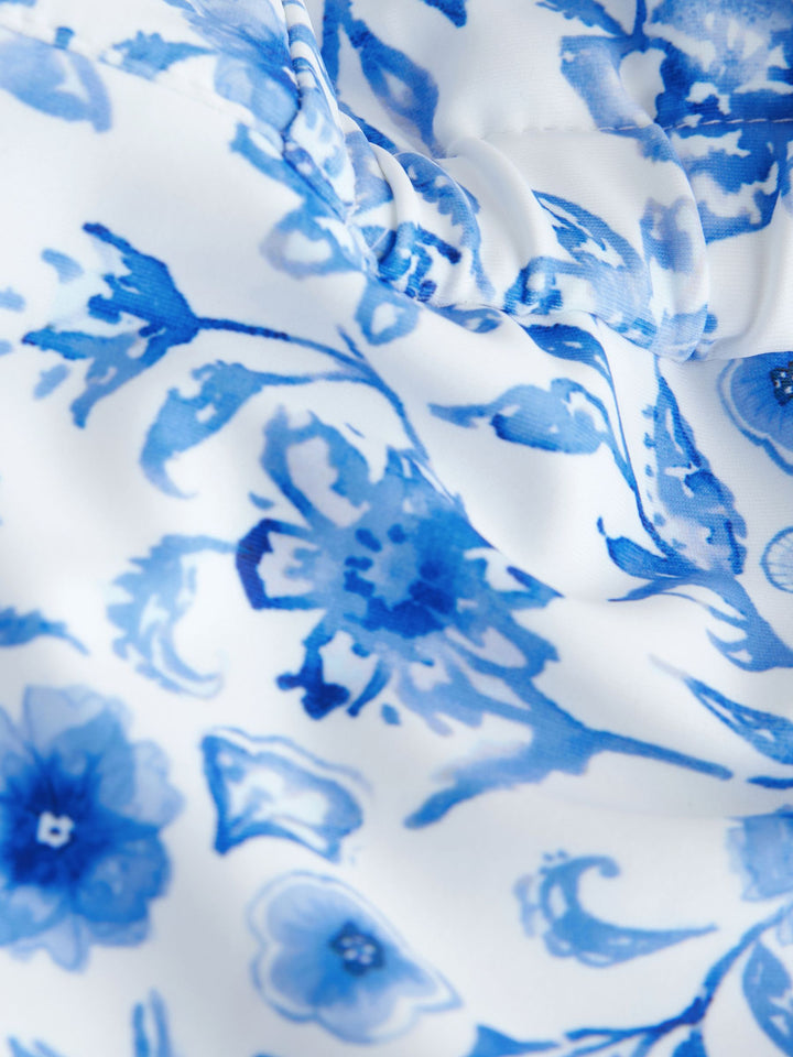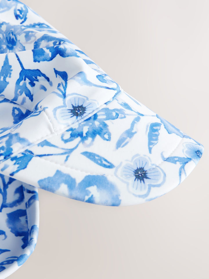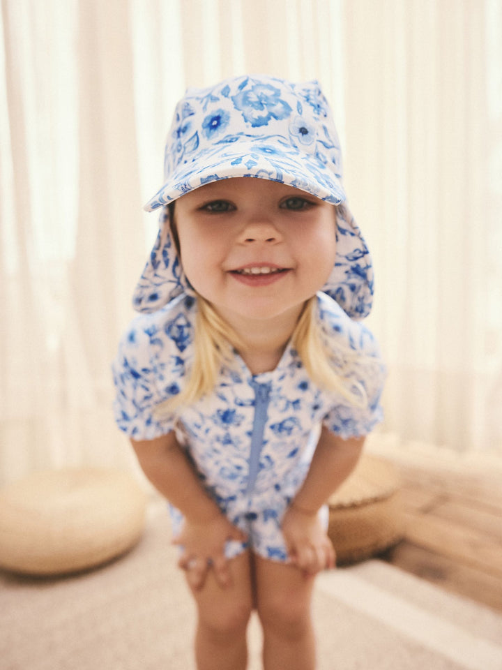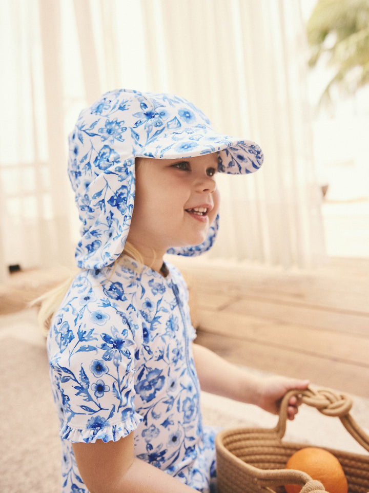 Keep her cool and comfy with our blue floral swim cap. In a lightweight fabric this cap is designed with a cap peak and backneck covering for sun protection. Coated in a stunning print, it's a must-have accessory for summer. Lightweight fabric Backneck covering Floral print 82% Recycled polyester, 18% Elastane. Country of Origin: China This fabric will provide protection against solar ultraviolet radiation. It has been independently tested and given a UPF rating of 50+ which blocks more than 97.5% of UV rays. Important Advice: • Sun exposure causes skin damage • Only covered areas are protected • Always use a high protection factor sunscreen on any exposed areas of skin • The protection offered by this fabric may be reduced with use or if stretched or wet • Always rinse in fresh water after each use • Young children should be kept in the shade between 11 and 3 • Don't forget your hat and sunglasses. • Fabric provides UVA +UVB protection from the sun.