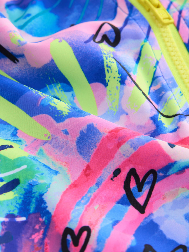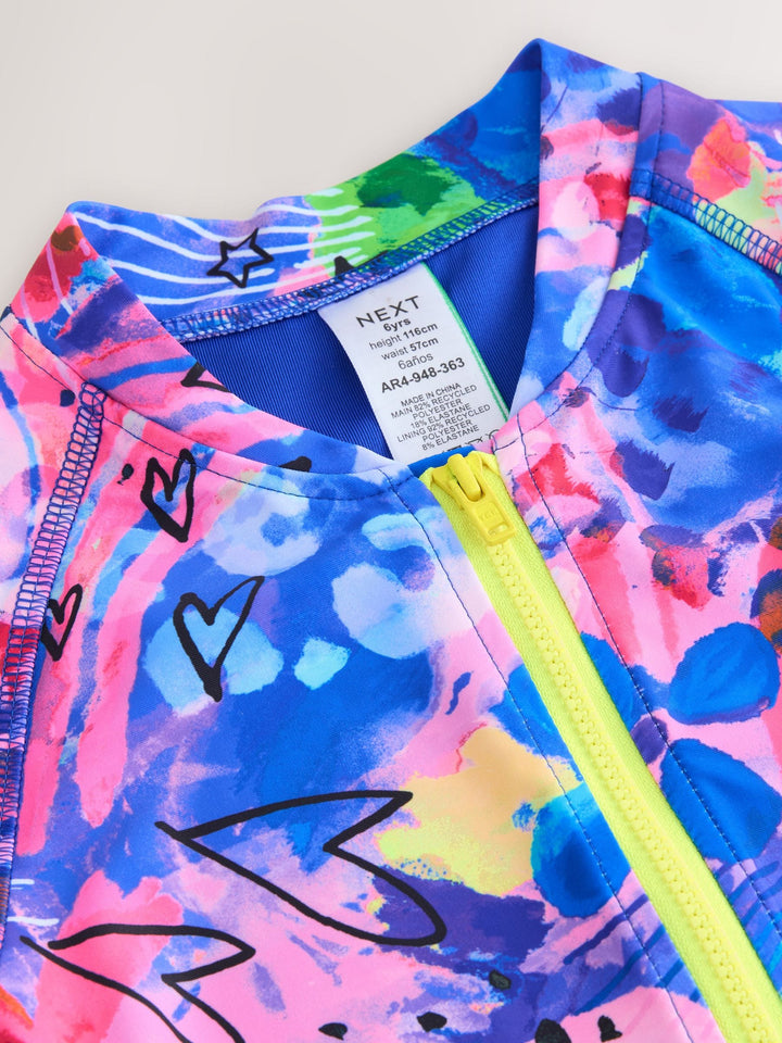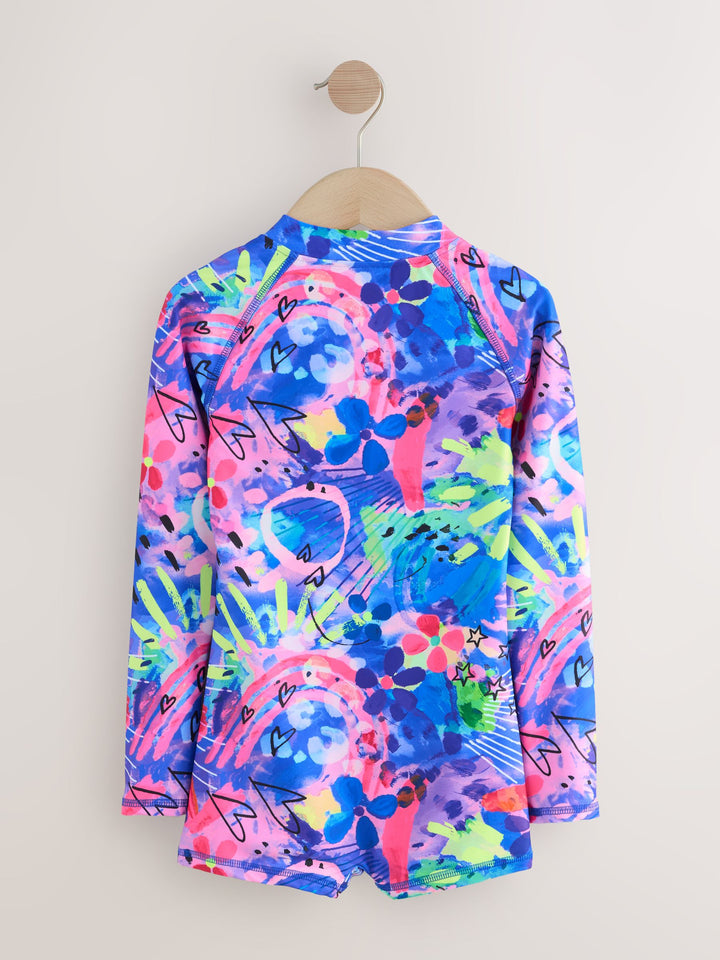 Blue Graffiti Long Sleeved Shortie Swimsuit (3-16yrs)