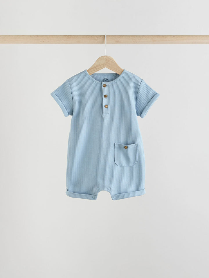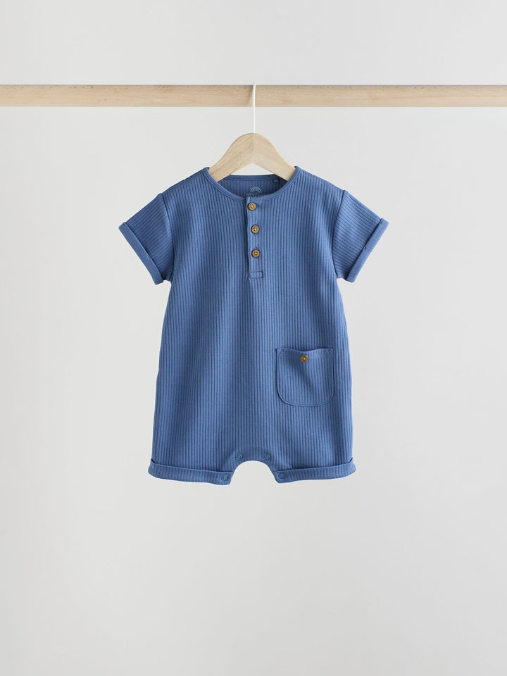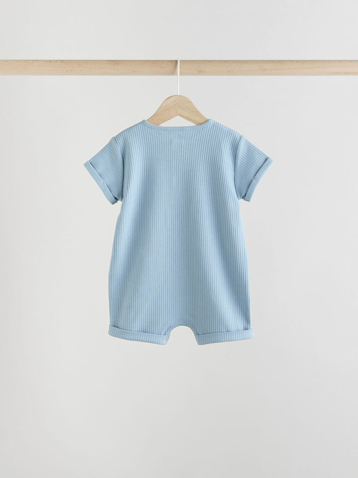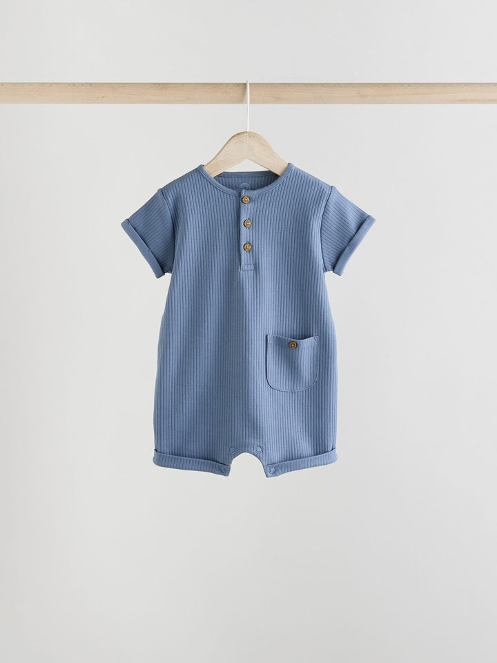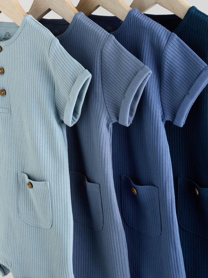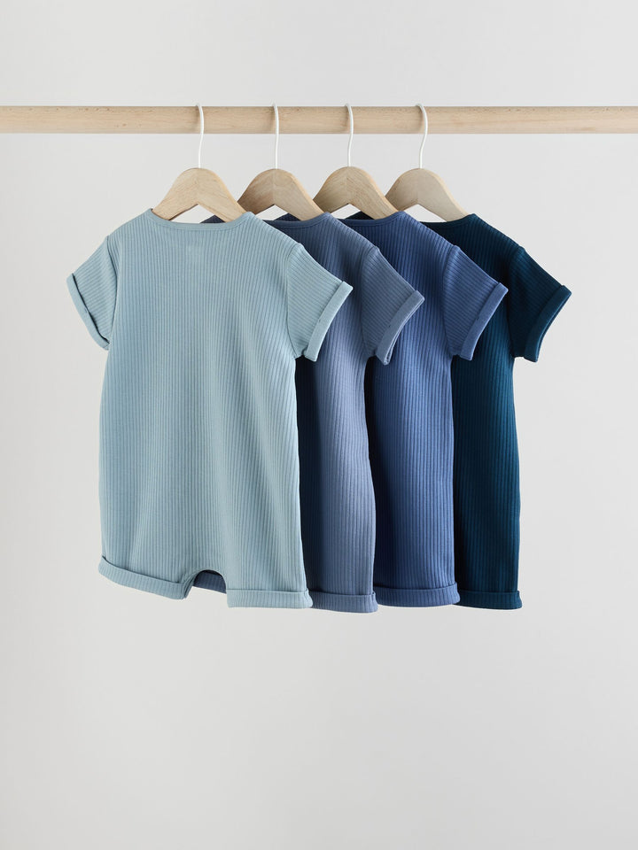 Stock up on baby essentials with this handy 4-pack of pure cotton rompers, featuring a crewneck collar, short capped sleeves and a popper fastening for easy changing, finished with star and striped prints in shades of blue and teal. 4-pack 100% Cotton Stripe and starprint Crewneck collar Popper fastening Machine washable. 4 x Romper 100% Cotton. Country of Origin: Bangladesh Warning: Keep away from fire and flames.