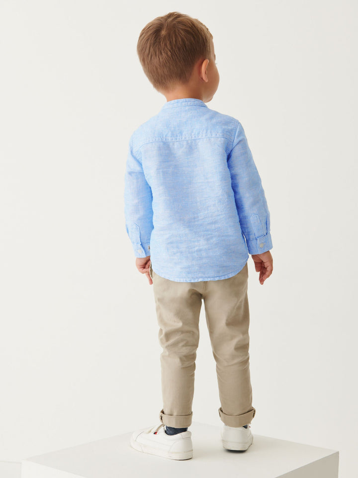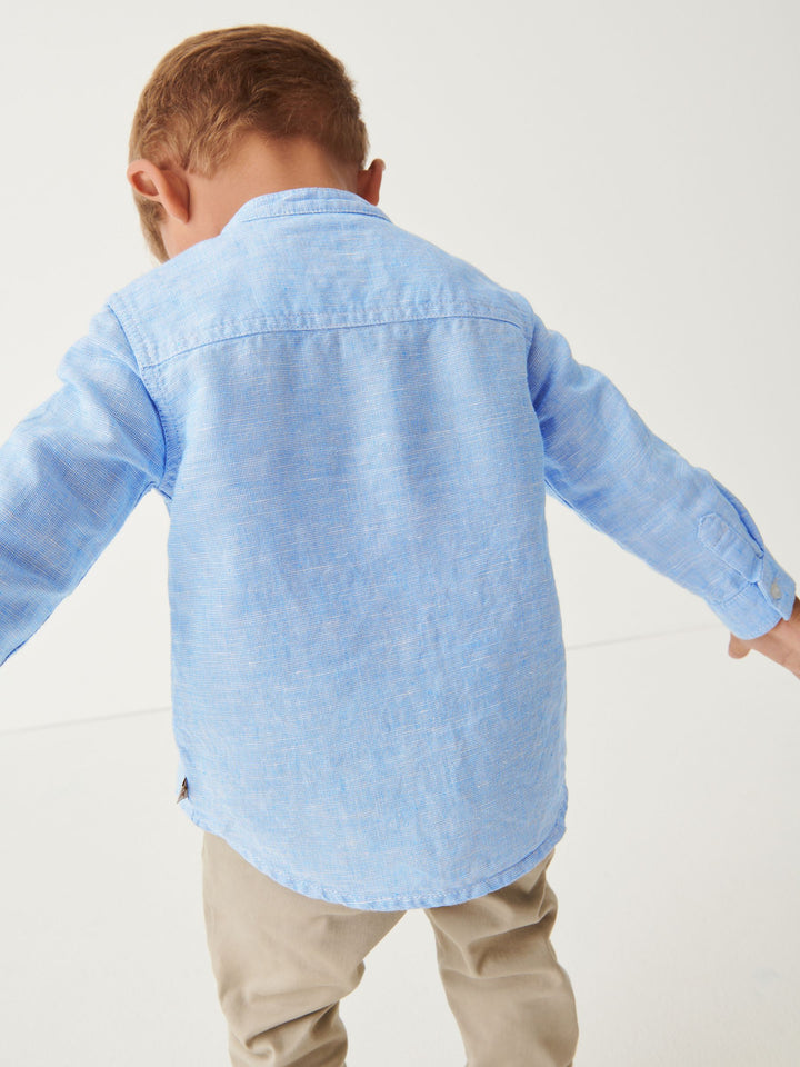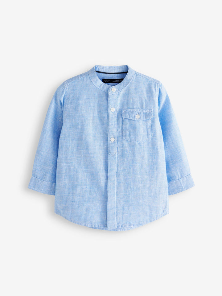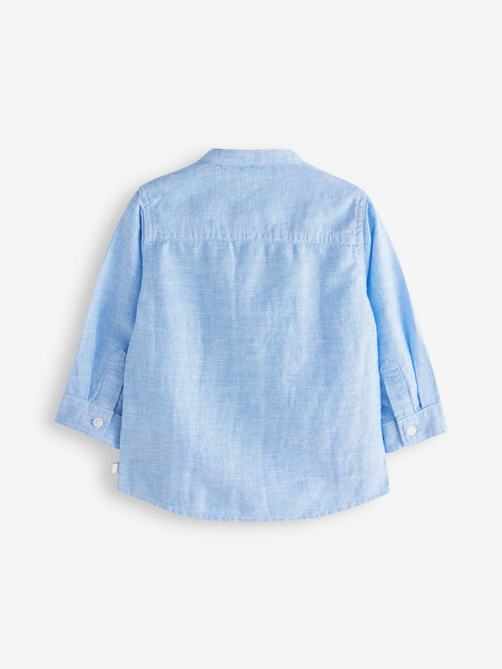 Blue Grandad Collar Linen Mix Shirt (3mths-7yrs)