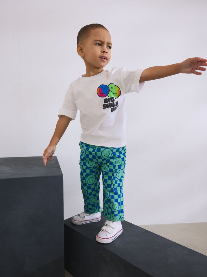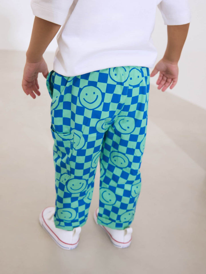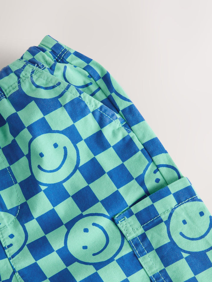 Blue/Green Checkerboard Side Pocket Pull On Trousers (3mths-7yrs)