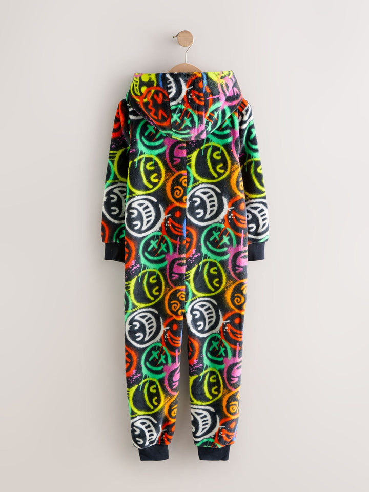 Blue/Green/Red/Yellow Happy Face Fleece All-In-One (5-16yrs)