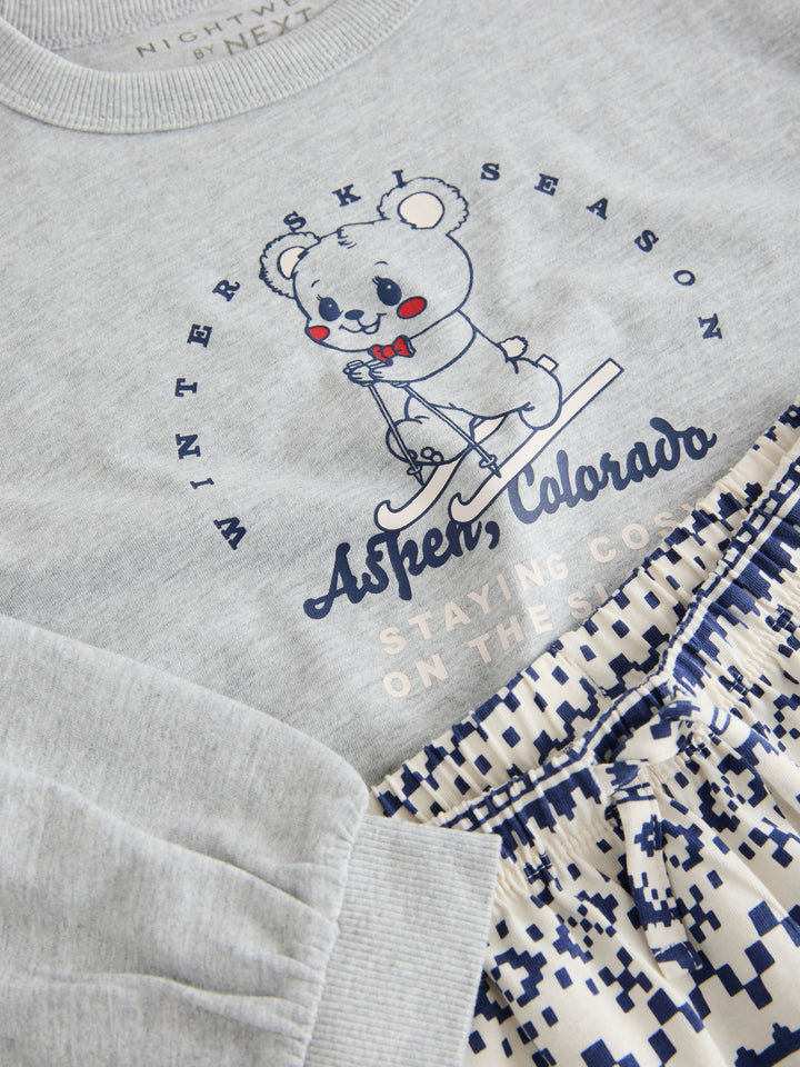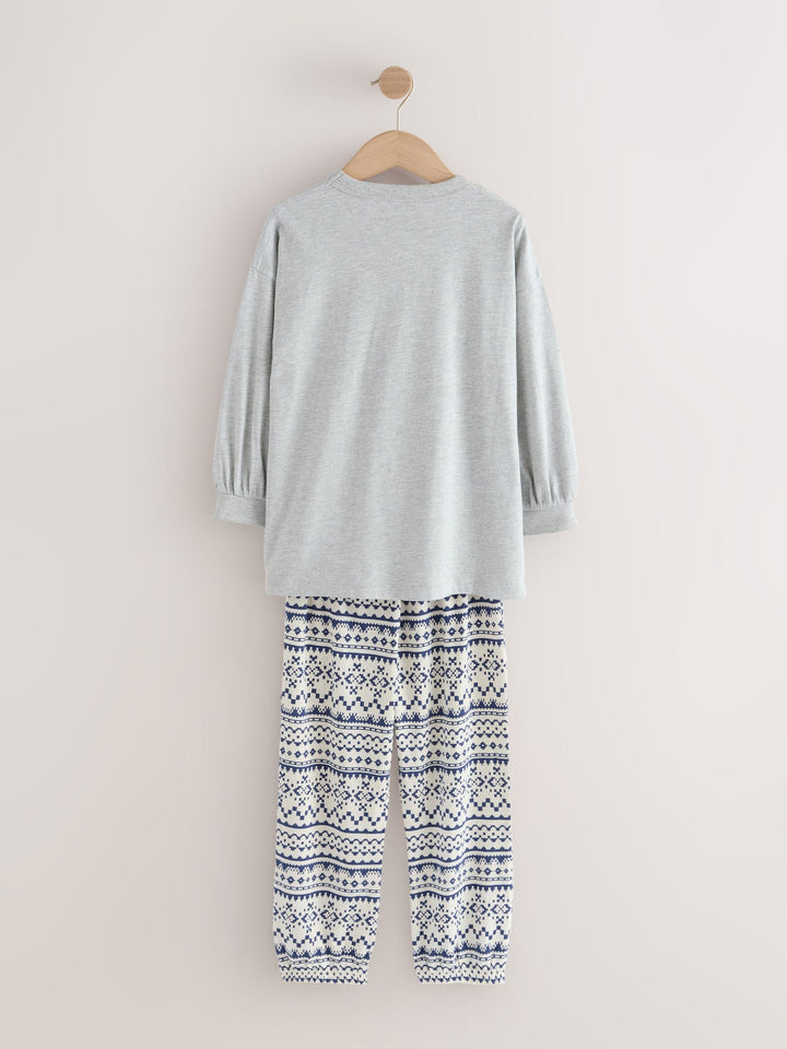 Blue/Grey Bear Print Fairisle Pyjamas (3-16yrs)