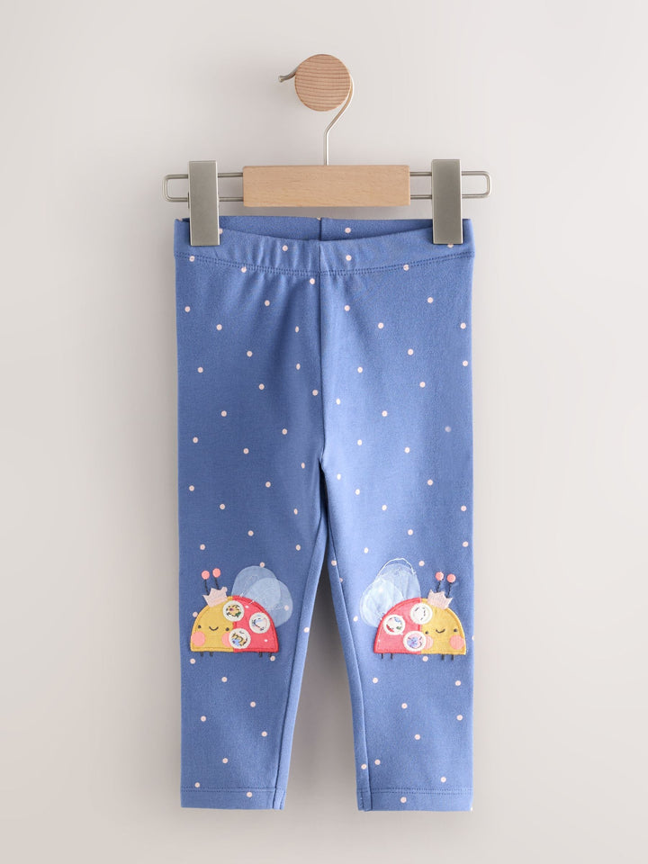 Blue Ladybird Knee Embellished Leggings (3mths-7yrs)