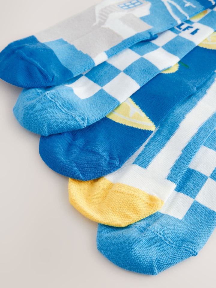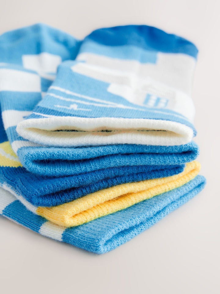 Your little dude will love these bold and bright socks, available in a handy 5-pack and featuring different designs to each pair, crafted from a comfortable jersey construction. Five pack Different designs Cotton blend construction This product contains the biocide linseed oil 5 x Socks 74% Cotton, 24% Nylon, 2% Lycra® Elastane. Country of Origin: Turkey